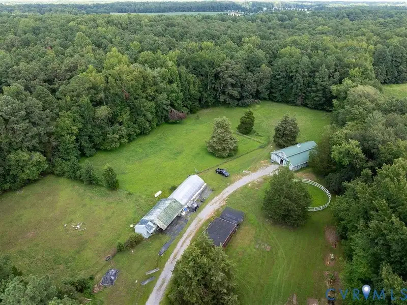 - Tree-lined driveway with horse pastures