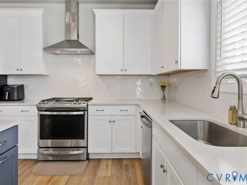 - Kitchen with quartz countertops and gas cooktop