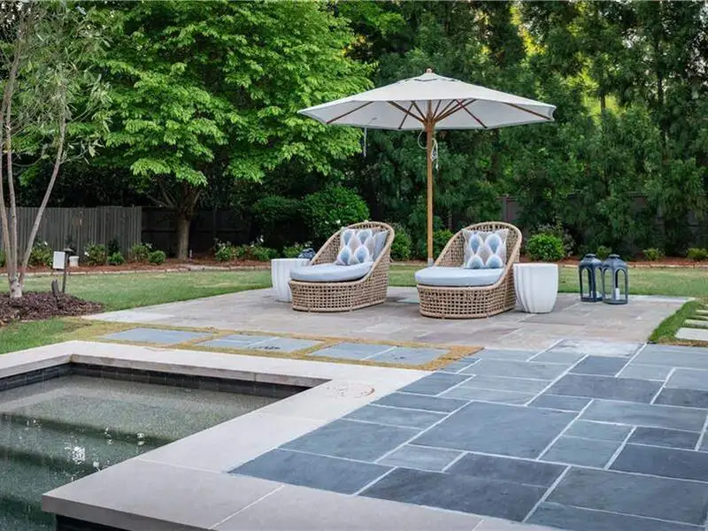 - Manicured grounds with pool and garden