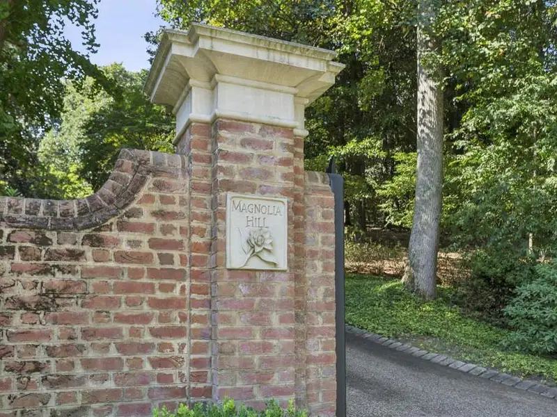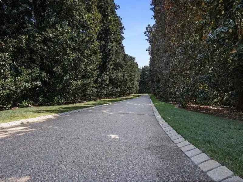 - Long private driveway with magnolia trees