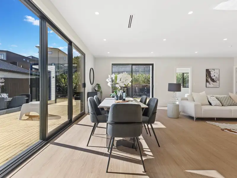 The expansive decking area flows seamlessly from the living and dining spaces, creating the ultimate venue for alfresco dining, relaxation, and memorable gatherings.
