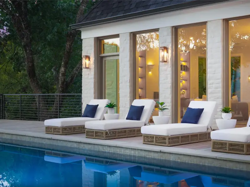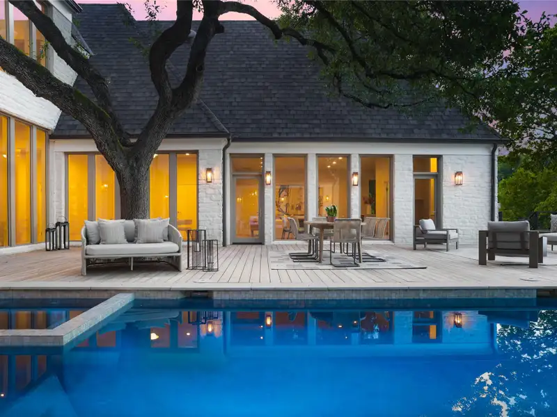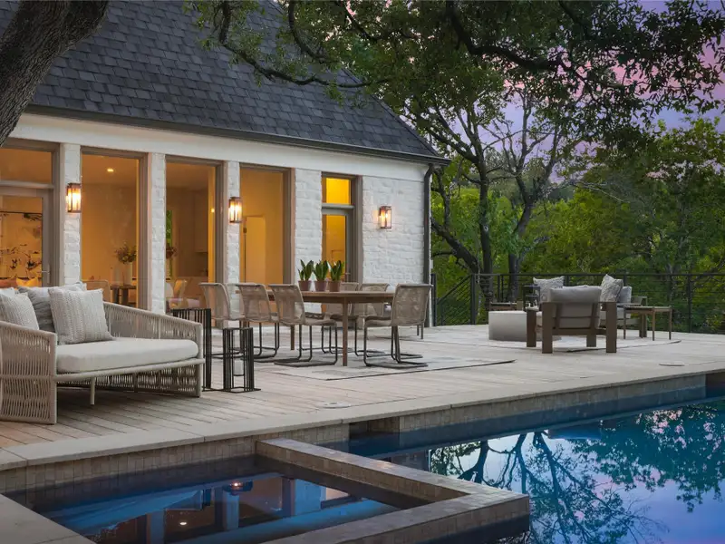 - Backyard with pool and lush privacy
