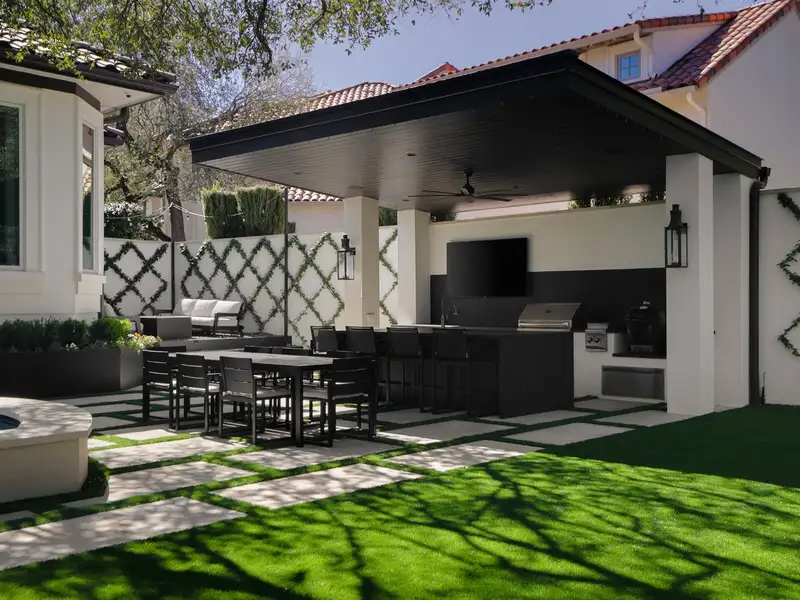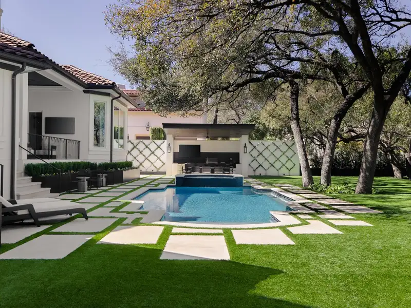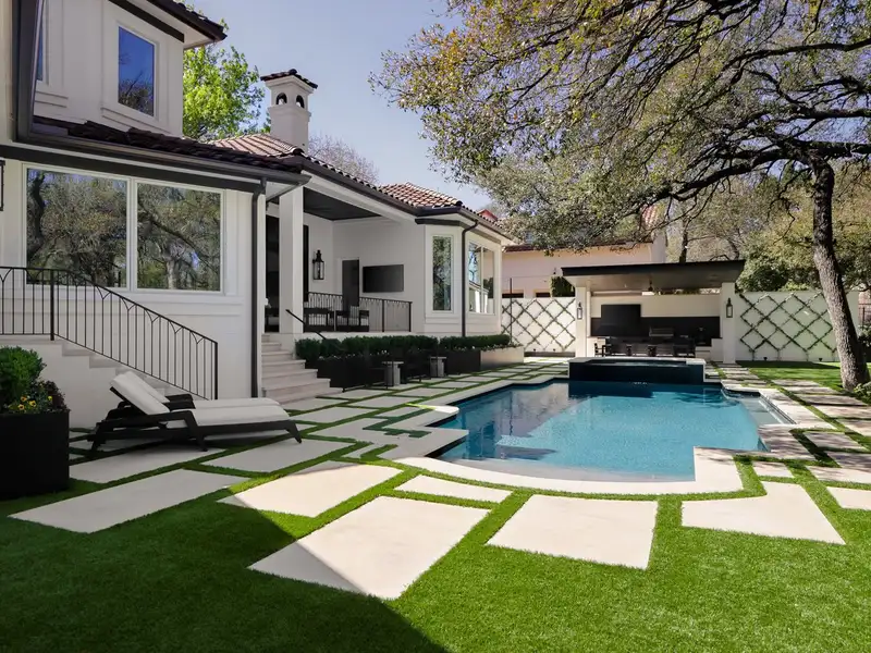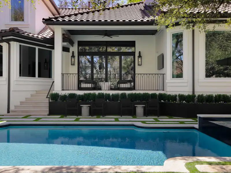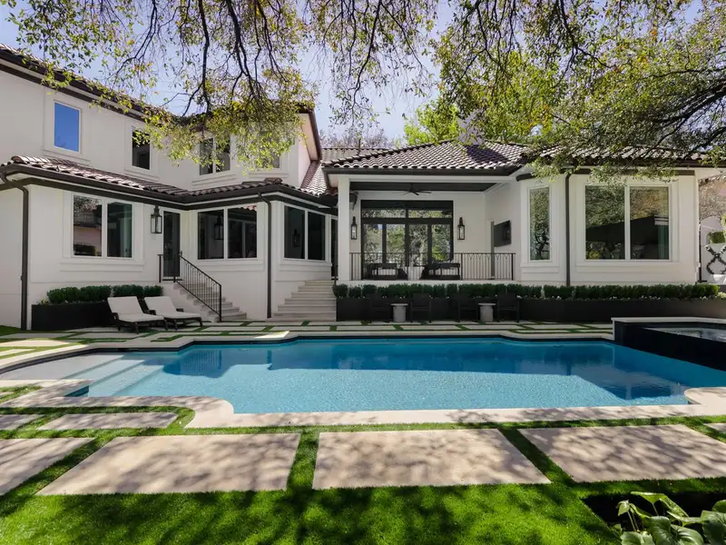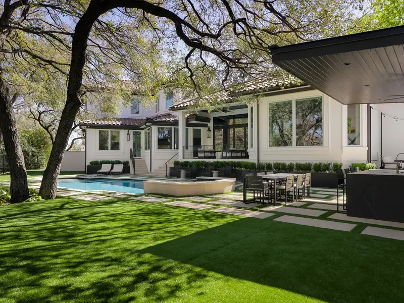 Tucked within the prestigious gated community of West Rim Estates in the heart of Westlake, 3013 Sparkling Brook Lane is a masterfully reimagined modern Mediterranean estate that exudes elegance, sophistication, and thoughtful craftsmanship. Fully remodeled in 2020 by EEF Custom Homes with interior design by J Fuller Interiors and landscape artistry by Sweetwater Landscape & Projects and The Garden Design Studio, this +/- 5,746-sqft residence (per appraisal) harmoniously balances architectural precision with modern luxury. The home’s commanding presence on a private north-south facing cul-de-sac is enhanced by lush, professionally designed landscaping, manicured greenbelt views, and extensive exterior upgrades including a resort-style pool renovation, bespoke outdoor kitchen, and fire pit lounge framed by natural stone and custom steelwork. The property’s smart home automation integrates lighting, climate control, AV systems, shades, irrigation, pool, security, and more—creating a seamless, state-of-the-art living experience.