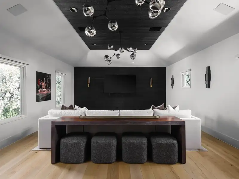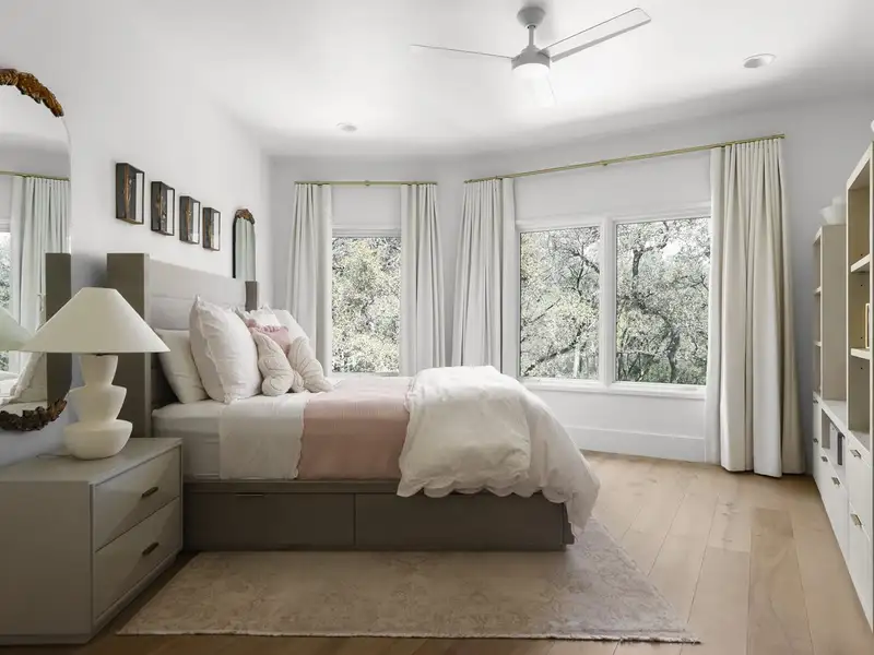 Accommodations include five generously sized bedrooms, and a variety of versatile spaces designed for both quiet retreat and lively gatherings. The main-level primary suite offers an expansive spa-inspired bath with dual vanities, a standalone soaking tub, and a dual walk-in shower, while a separate guest suite ensures privacy and comfort for visitors. The home is further enhanced by a main-floor office with a connected file room, a large laundry room with secondary dishwasher and refrigerator, a mudroom, and abundant storage throughout. ;The main level is complete with a secondary office. ;Upstairs, three additional bedrooms, a media room, and a flex space provide flexibility for family living. Beyond the interiors, the three-car garage has been optimized with cabinetry, slat wall systems, ceiling-mounted storage racks, and finished with sleek epoxy floors and new Martin doors. With access to about 70 acres of private greenbelt through the WRE Trail System and a location that blends seclusion with convenience, 3013 Sparkling Brook Lane offers an extraordinary opportunity to live beautifully and intelligently in one of Austin’s most sought-after neighborhoods.