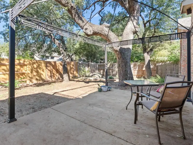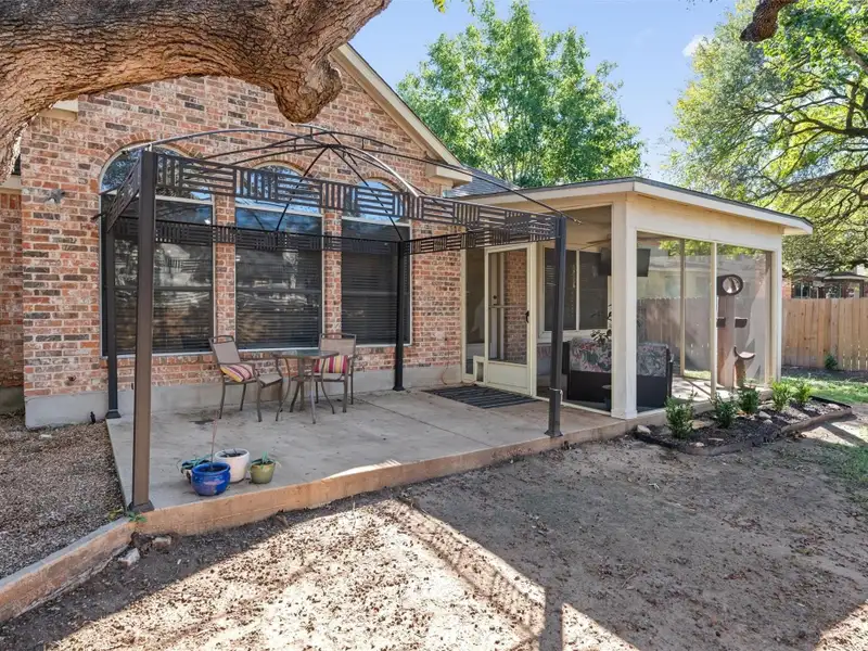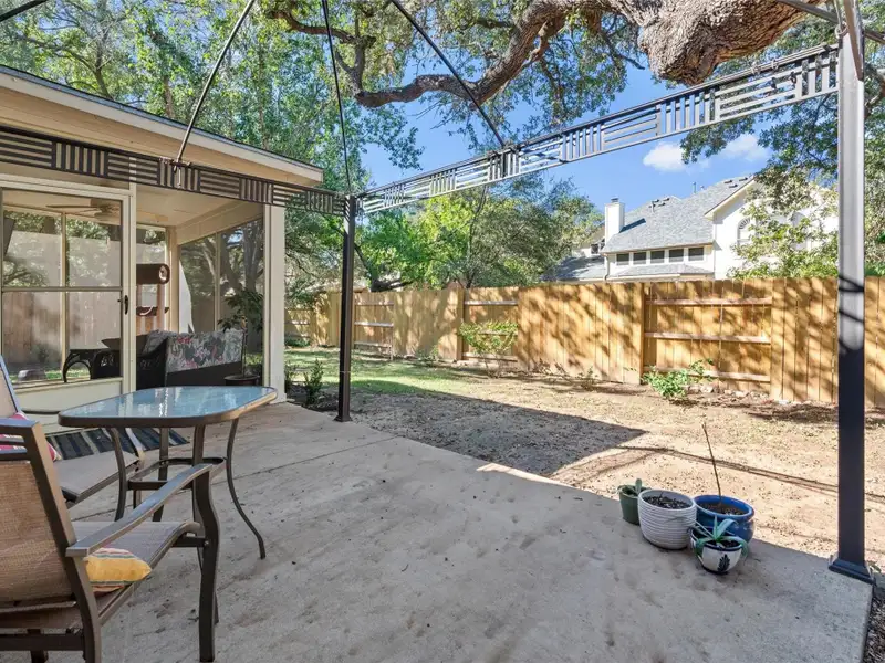 - Screened-in back patio overlooks backyard