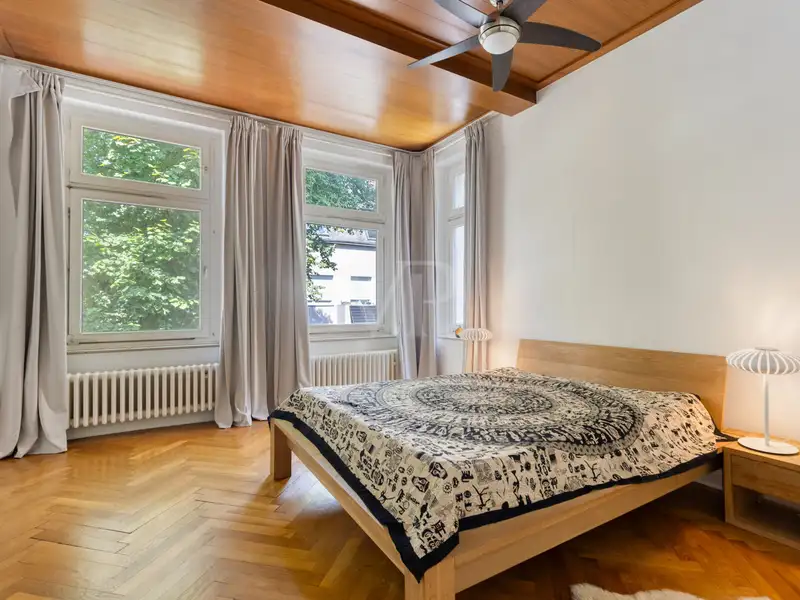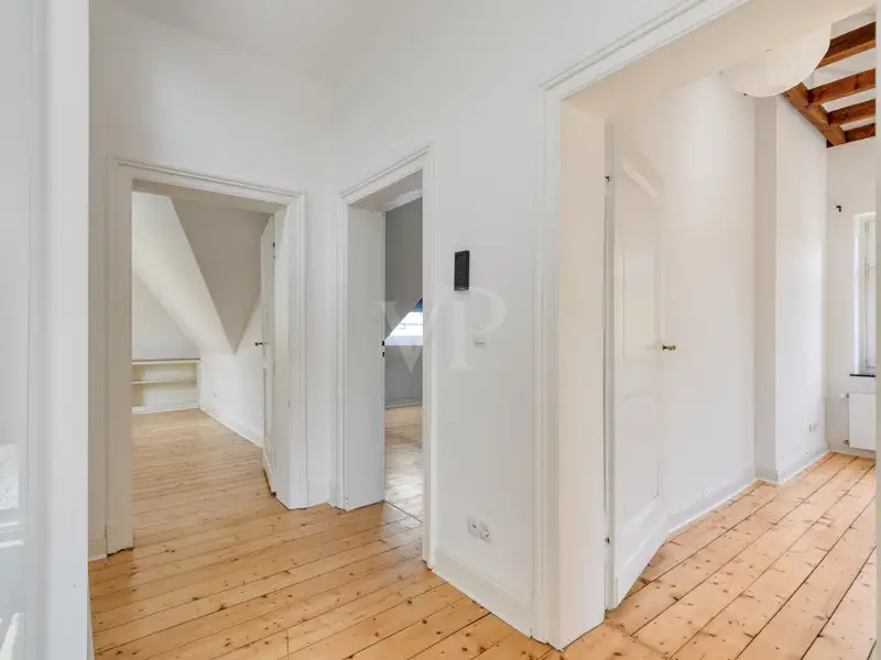 The house is technically up to date. A doorbell and intercom system is installed on each floor, which increases both security and living comfort. The high-quality furnishings extend to all rooms: parquet and wooden floors in the living and sleeping areas, stylish wallpaper and paintwork as well as carefully refurbished details.