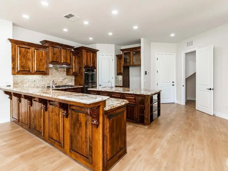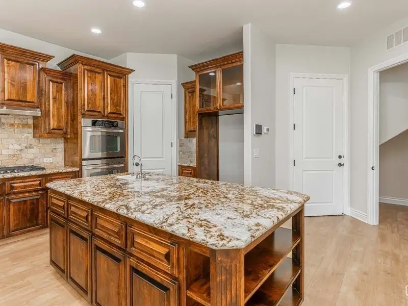 • Gourmet kitchen with quartz and double ovens