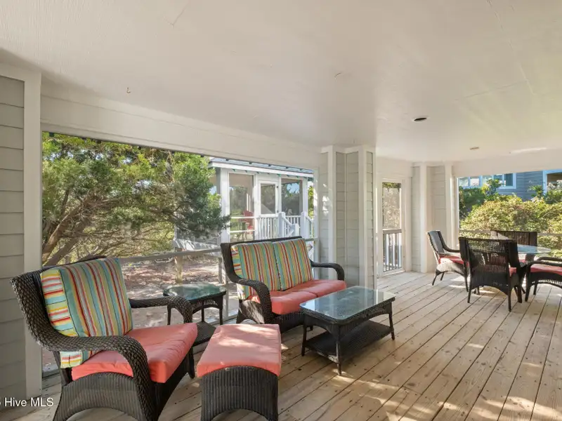 - Front sunroom and screened porches