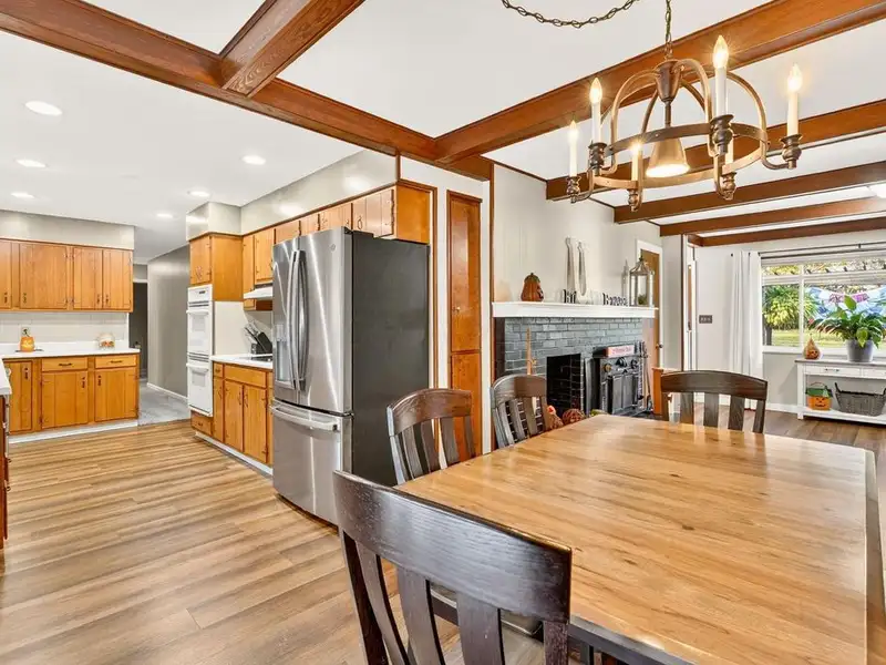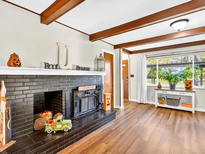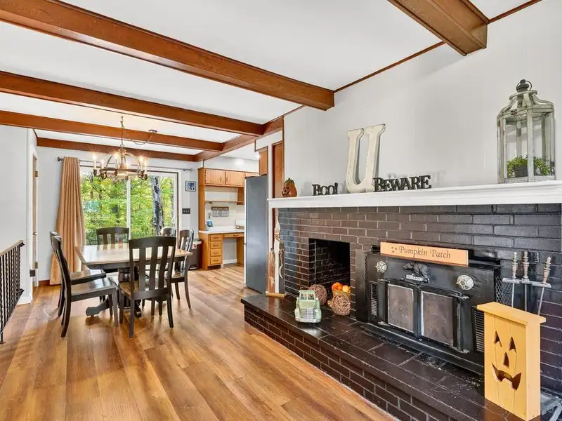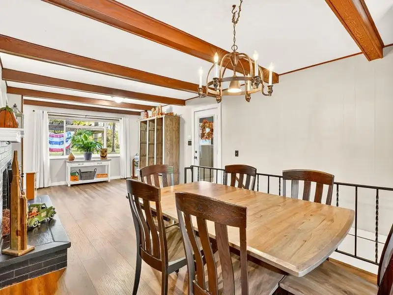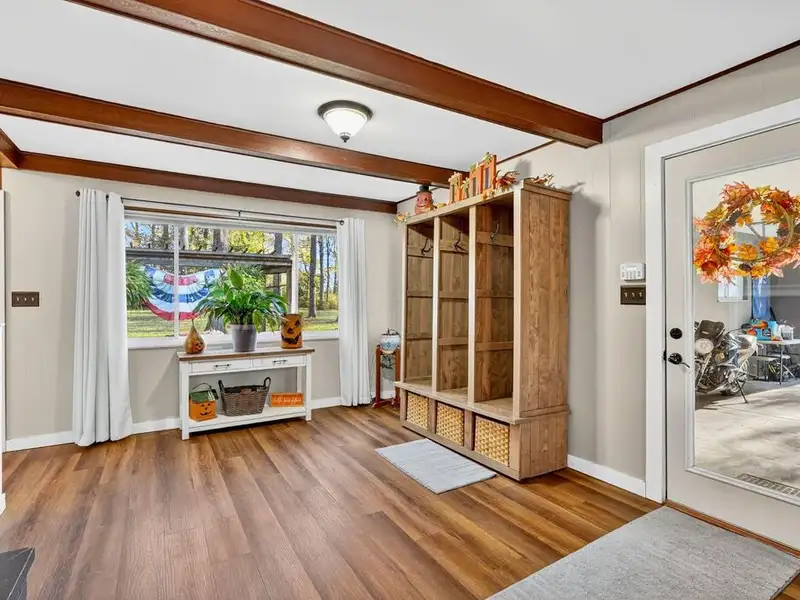 - Upgraded flooring and wood beams