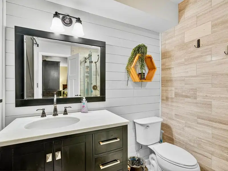 - Finished lower level with rec room