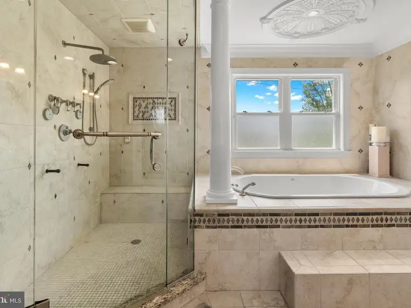 Welcome to this exquisite 6-bedroom, 4.5-bath Colonial, boasting over 6,000 square feet of meticulously crafted living space. Built in 2008 and nestled in a highly desirable Pikesville neighborhood, this property is a true gem offering comfort, sophistication, and space for the entire family. Main Level highlights include- breathtaking entryway with soaring ceilings, elegant curved staircase, custom mosaic floor with a dazzling crystal chandelier, a formal dining room with rich wainscoting, crown molding, medallion ceiling, and its own crystal chandelier, an expansive living room perfect for entertaining or relaxing. A gourmet chef's kitchen featuring stunning granite countertops and custom wood cabinetry, ceramic tile floors and massive center island with an under-the-counter microwave and oven, 2 sinks, 2 dishwashers, state-of-the-art appliances including gas Wolf range, a Sub-Zero paneled refrigerator and a separate Sub-Zero paneled freezer, Butler's pantry with additional cabinetry and sink, 2 large walk-in pantries and breakfast area with access to a maintenance-free deck and patio, Family room with cozy gas fireplace and adjacent powder room, mudroom with side entry and direct access to 2-car garage equipped with Tesla charger, and a guest suite with private full bath. Upper level includes double-door entry to the luxurious primary suite featuring a spacious sitting area, 2 large walk-in closets, Spa-inspired en-suite bathroom with jacuzzi tub, glass walk-in shower, dual vanities, walk-in linen closet, and private toilet with bidet. Upper level also features additional generously sized bedrooms (one currently used as an office), 2 full hall bathrooms and an open hallway with sitting area, a convenient upper-level laundry room with washer and dryer, and staircase access to full-size attic with roughed-in flooring, windows, and balcony access. The Lower level features a full-size, unfinished basement with 10-ft ceilings, plumbing rough-ins, and French doors leading to walk-out stairs to backyard oasis with deck, patio, and a charming children's playhouse. Exterior front includes beautiful landscaping and an oversized driveway for more parking. Additional highlights include high-end Santos Mahogany hardwood floors, custom crown molding, recessed lighting throughout, large windows offering abundant natural light, dual-zone HVAC system (one unit replaced in 2024) and 400-amp electrical service. This custom designed home is a rare find-perfect for families, entertaining, and enjoying luxury at every turn. Impossible to replicate at this price with today's construction costs. Don't miss the opportunity to make this dream home yours!