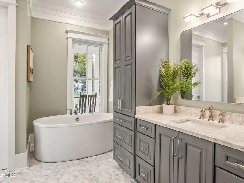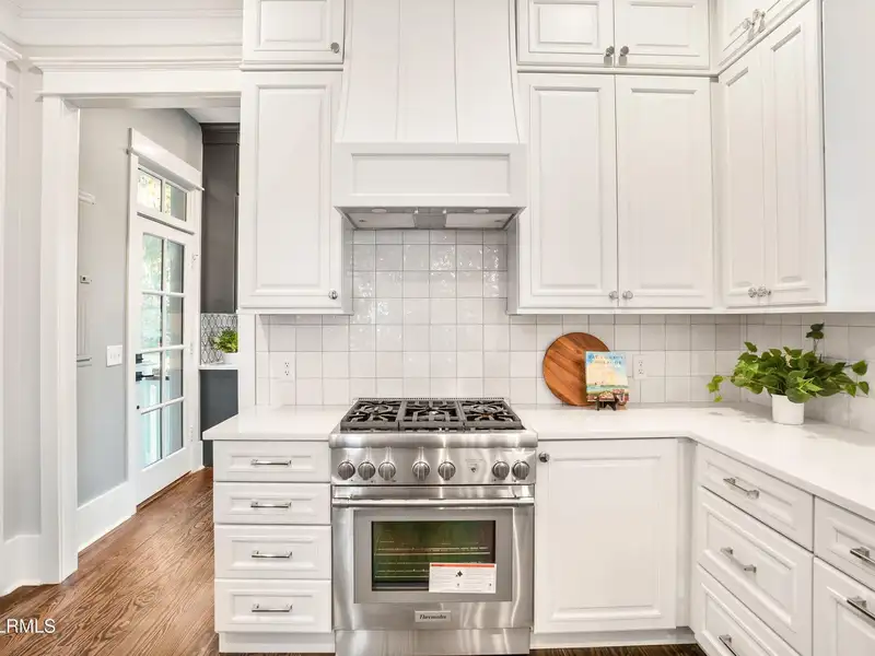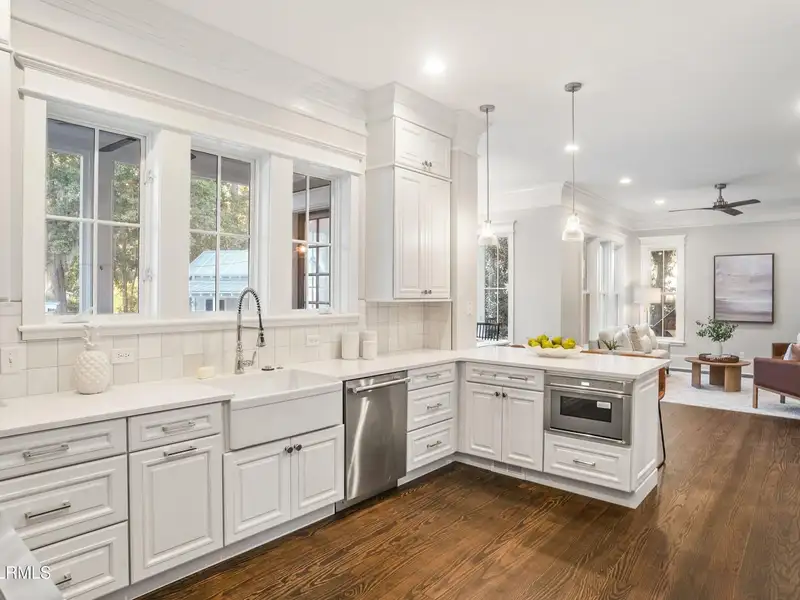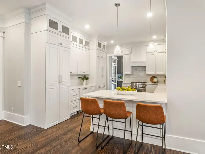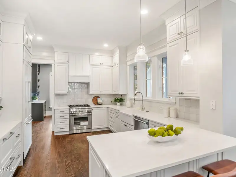 - Remodeled kitchen with custom cabinetry and walk-in pantry