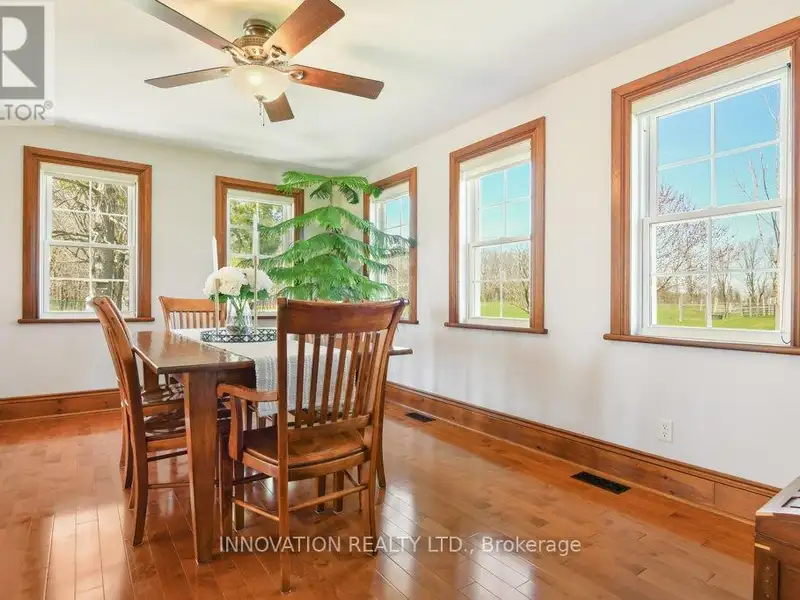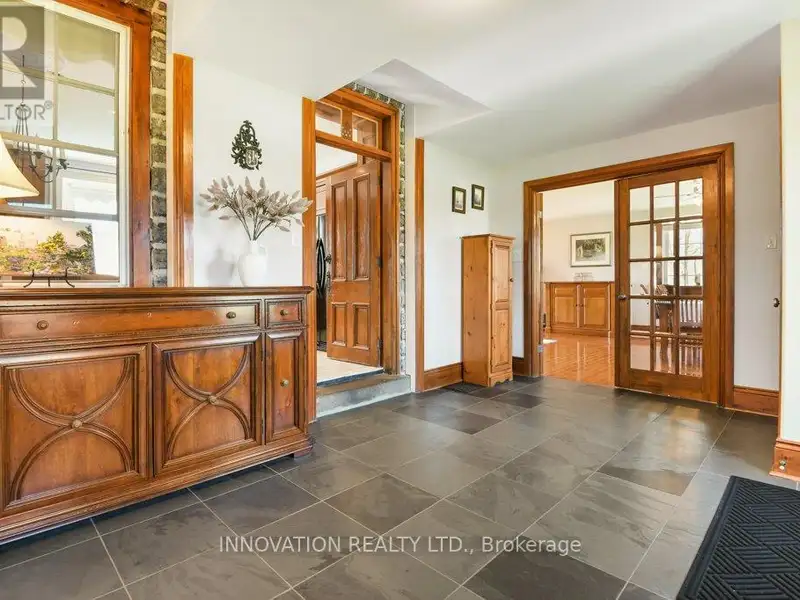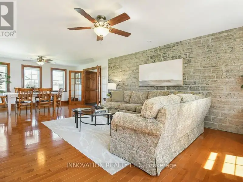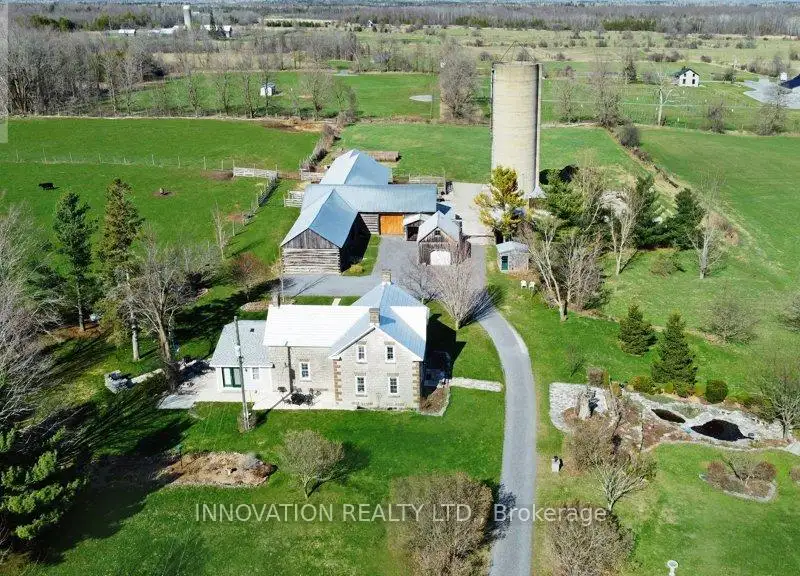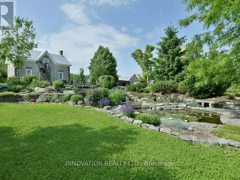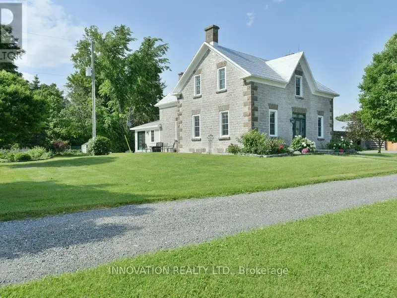 Step into a timeless masterpiece where history and luxury intertwine! This breathtaking solid stone home, crafted with unparalleled artistry in 1877, has been lovingly restored to preserve its old-world charm while seamlessly blending modern sophistication. Nestled at the heart of 138 pristine acres, this enchanted estate captivates with mature trees, vibrant perennial gardens, a cascading waterfall, and a serene pond that create a private paradise of tranquility and natural beauty. Inside, every detail exudes elegance. Expansive country kitchen, adorned with custom solid cherrywood cabinetry and gleaming granite countertops, invites culinary creations and warm gatherings. Grand family room, bathed in natural light through abundant windows, features cozy gas fireplace and rich hardwood floors, perfect for creating cherished memories. Original wide-plank pine flooring, meticulously refinished, flows throughout, complemented by restored trim, doors, sconces, and intricate ceiling medallions that whisper stories of a bygone era. Main floor boasts a gracious foyer, a center hall plan, convenient laundry room, and sophisticated office wrapped in cherrywood cabinetry. Upstairs, the sprawling primary bedroom is a sanctuary of indulgence, complete with luxury ensuite and generous walk-in closet. Modern upgrades enhance comfort without compromising the homes historic soul. Beyond the residence, the estate shines with 100 acres of fertile farmland, 38 acres of majestic forest, and fenced pasture meadows, ideal for agricultural dreams or equestrian pursuits. Thoughtfully improved barns and outbuildings add versatility and charm to this historic homestead. Set in the serene Ashton countryside, with paved access to HWY 7 and minutes from Ashtons quaint amenities, this rare gem offers seclusion and convenience. Don't miss this extraordinary opportunity to own a piece of history, reimagined for modern living-a legacy estate where every moment feels like stepping into a storybook. (id:6509)