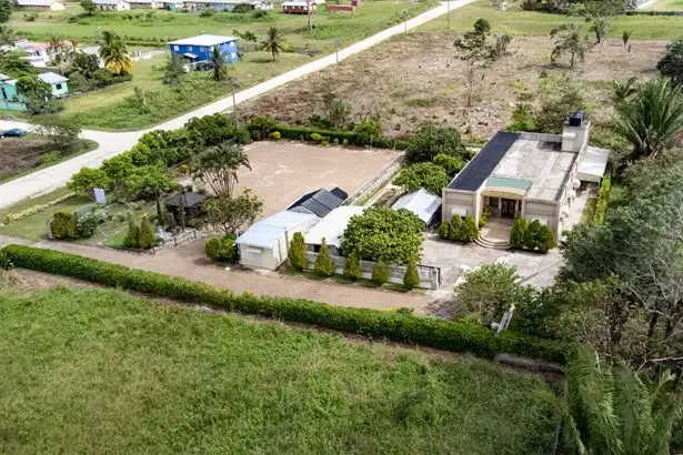 REDUCED! This impressive 8-bedroom residence sits on a well-maintained, fully fenced 0.781 acre lot on University Boulevard in the Capital City offering approx. 165 ft of road frontage and access to all utilities. For over a decade it was home to 96 Orchard Gardens, one of the premier florists in the country, and a landmark property in Belmopan. It offers an abundance of indoor and outdoor real estate which allows for both residential and commercial applications.At the back of the property, the massive 3,600+ sq ft residence has 4 bathrooms to compliment it’s 8 bedrooms with dual master ensuites near the main entrance and 6 additional guest bedrooms split evenly along both sides of a large center living area that offers a massive social/living area to the front and a spacious family/dining room to the back separated by a large study/reading room in the middle. A fully equipped galley kitchen and laundry room with washer/dryer and storage space sit on opposite ends at the rear of the home which also has an inner stairway which takes you to the upper-level rooftop that provides an addition 3,600+ sq ft of outdoor floorspace that can be used as an open-air social area, rooftop garden, sundeck and much more.Built to hold multiple levels, the solid concrete construction offers the opportunity to double or triple the amount of available square footage by adding a second and third level. The building's size and quality of construction would allow it to easily be converted to commercial use offering multiple privates offices, with two conference rooms, a central reception area and separation between public and private areas where only staff would be allowed.Near the main house there’s a covered workshop with storage area and secure lockup, a concrete parking area for up to 8 cars and an outdoor green area with fountain all within a separate secure gated entrance inside the property. Beyond the main house at the front are the grounds where the extensive greenhouses and gardens once were, that have now been converted and leveled to provide an open area that’s almost a ¼ acre in size and can be used as the site for a commercial building or restaurant, a large parking area for up to 24 cars, two full size tennis courts, a full-size basketball court with bleachers, a professional gym, a full-sized short course swimming pool or a large warehouse with an 8,000 sq ft base. There's also a 160 deep well with multiple storage tanks and three pressure pumps that provided water to the entire property.The garden’s iconic gazebo still sits near the front and its beautifully landscaped main entrance remains intact boasting dozens of flowering plants and shrubs that have delighted residents since the property opened its doors in 2010. The property is being offered furnished and move-in ready with 6 air conditioner units, a 5-piece hardwood furniture set, a 55" TV with entertainment center, 24hr digital camera security system, wide coverage mesh WIFI, family area furniture set, small dining table, washer and dryer, and kitchen with electric dryer rack, stove top, microwave, and refrigerator. Each bedroom offers a bed, table and chair and a standing dresser.Few properties offer as much opportunity as this one and savvy investors could realize the potential for this property to be a medical clinic, bed and breakfast, spa & fitness center, coworking office space, beauty salon, corporate office space or NGO compound. Schedule a visit to see for yourself what this property can be for you.