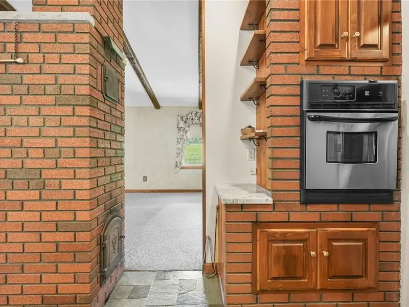 - Brick Russian fireplace as focal point