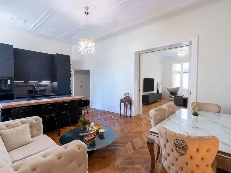 Typisch für den Altbau ist nicht nur die Raumhöhe, sondern auch der durchdachte Grundriss: Der vordere Wohnbereich lädt zum Zusammensein ein, während sich die Schlafzimmer angenehm zurückziehen – perfekt für Familien, Paare oder alle, die Wohnen mit Anspruch suchen.