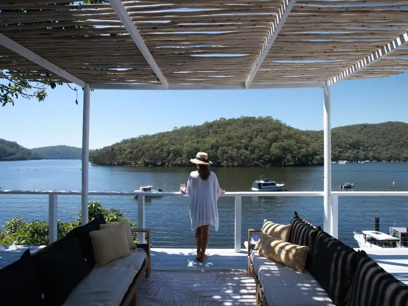 Tucked amid the whispering gum forests of Berowra Waters, just an hour from Sydney's CBD, Rivescape is the ultimate riverside retreat. Accessible only by boat, this private 639 m² haven blends seclusion, luxury, and convenience.