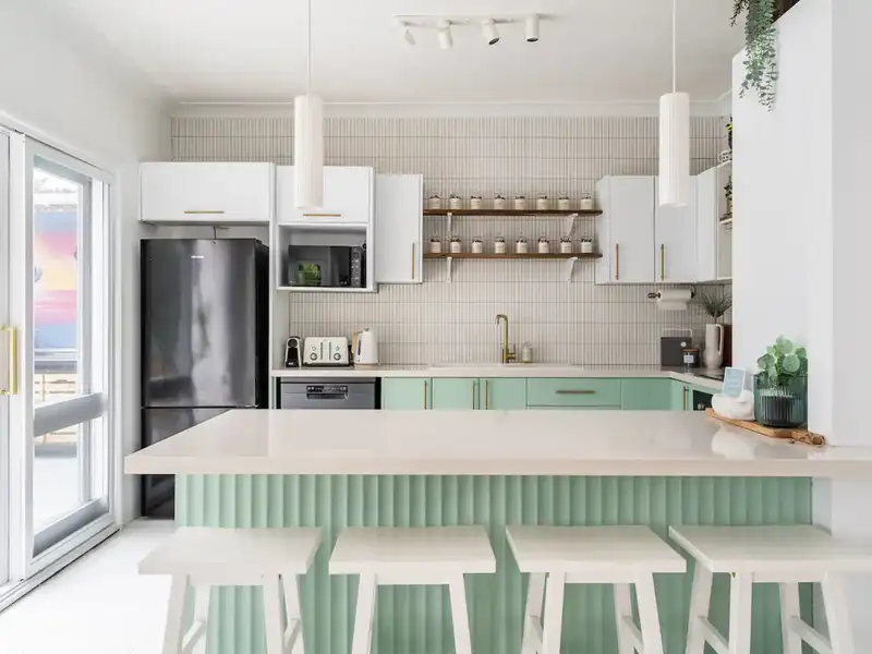 - Contemporary modern kitchen with stone benchtops & dishwasher