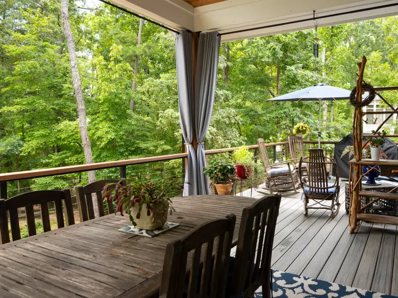 - Expansive rear porch with fireplace