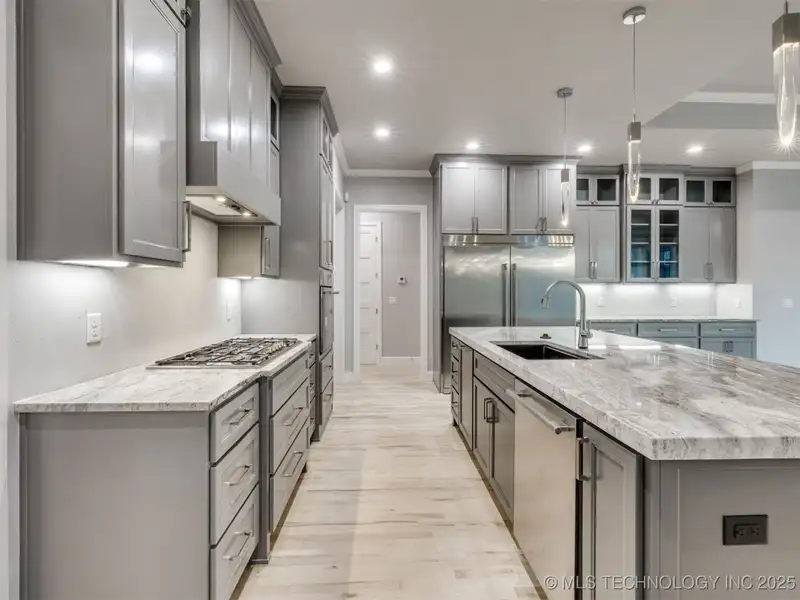 Take advantage of this builder incentive with rates as low as 3.5%*. This stunning contemporary new build sits at the back of a quiet cul-de-sac in the highly sought-after Bixby North School District. Featuring 3 bedrooms, 3.5 baths, and a spacious 3-car garage, this home offers an open floor plan with incredible natural light, custom lighting, and high-end finishes throughout. The thoughtful layout blends modern design with everyday functionality, while clean architectural lines and designer details elevate every room. If you're looking for a truly turnkey contemporary home with exceptional style, this one is a must-see.