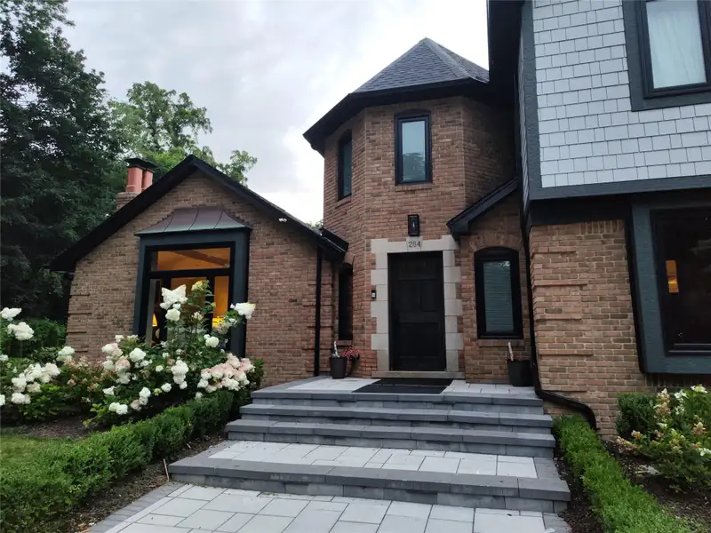 - Circular brick paved driveway