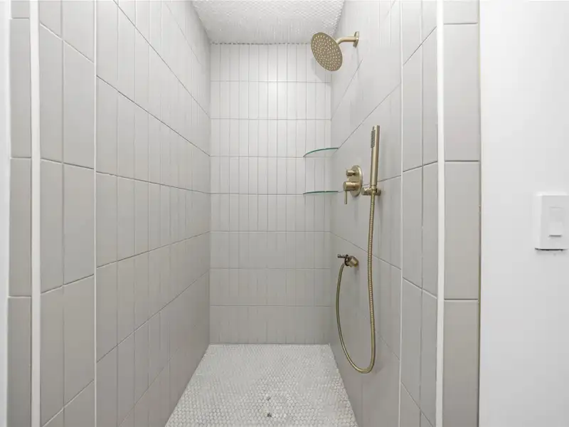 - Primary bath with walk-in glass shower