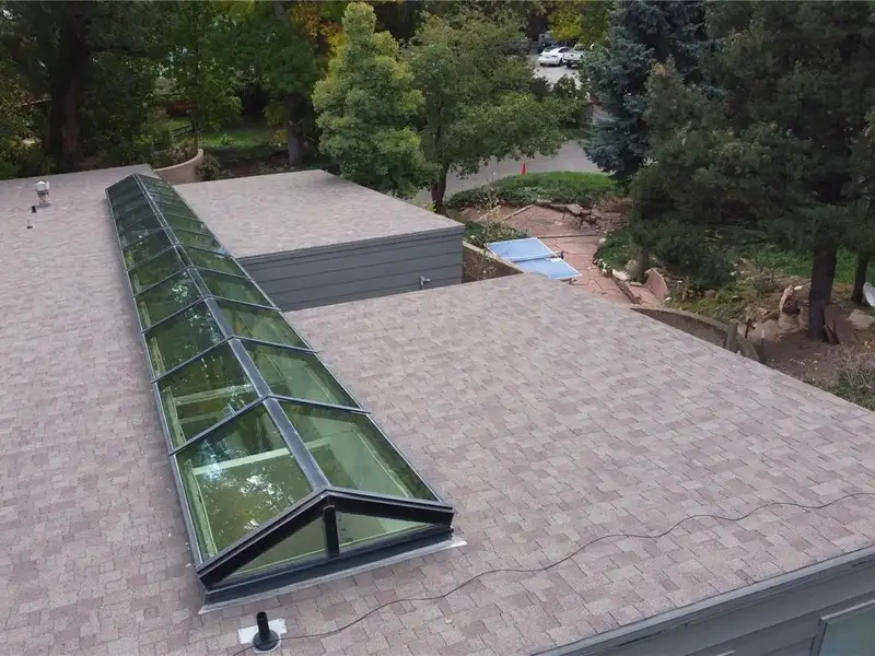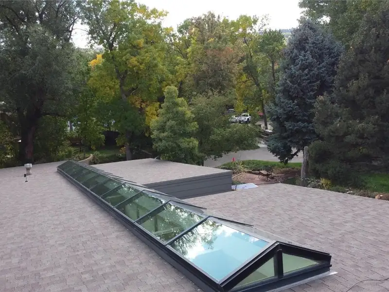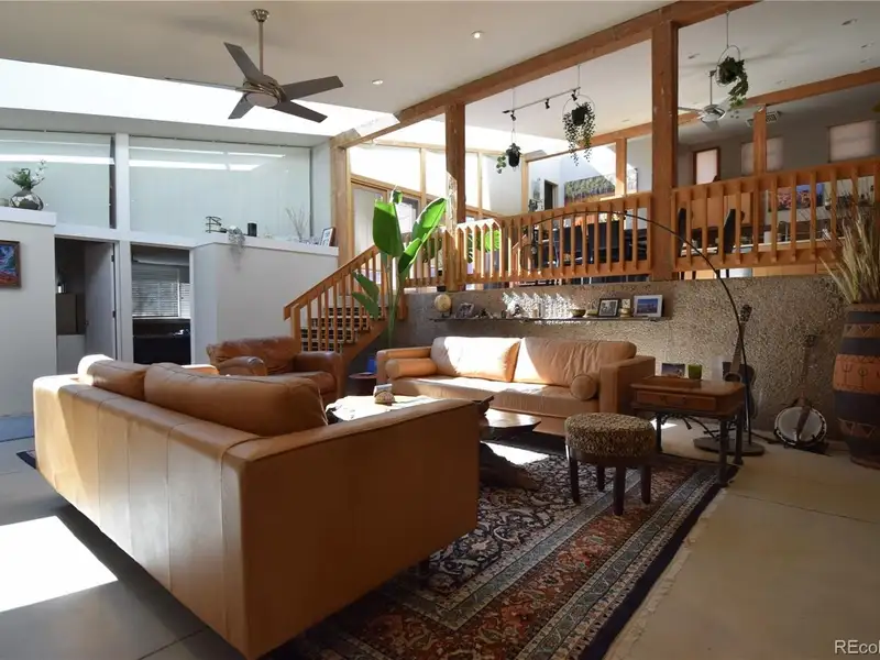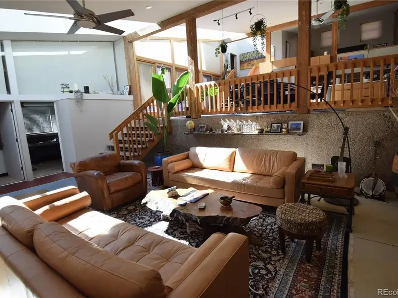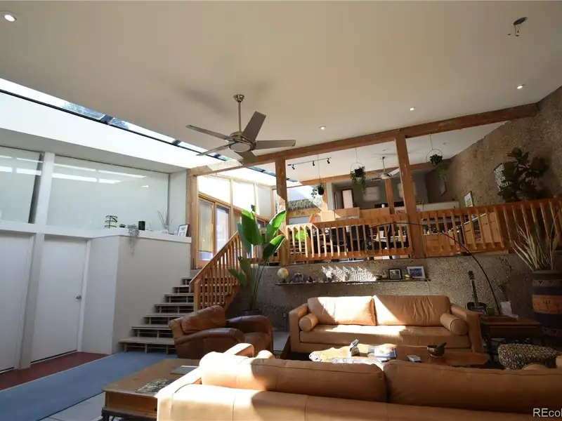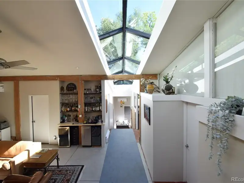 - Sunlit open-concept living with full-length skylight