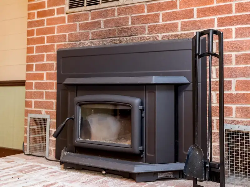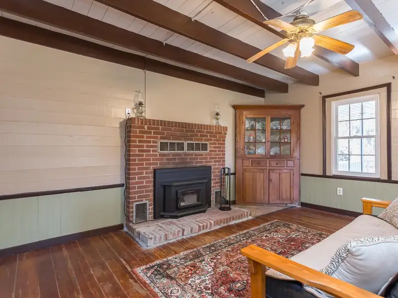 - Wood-burning fireplace in cabin