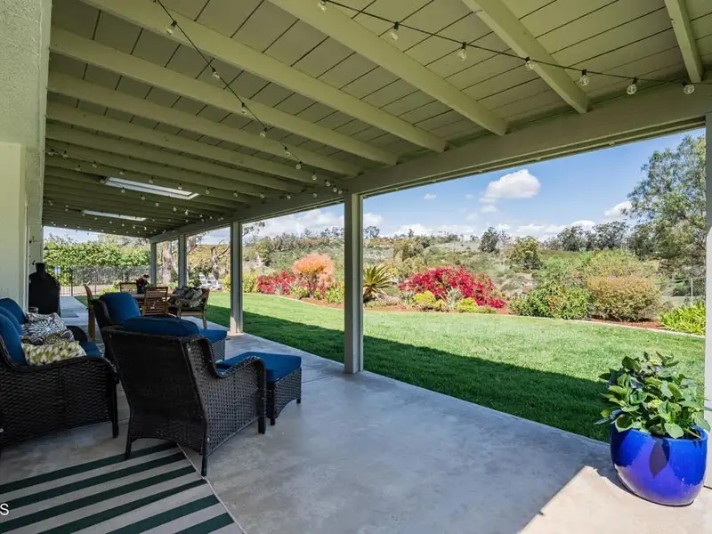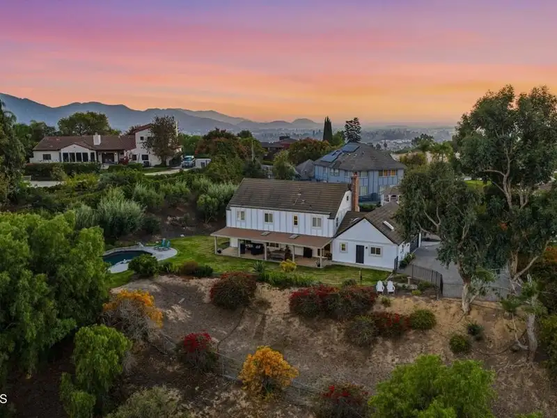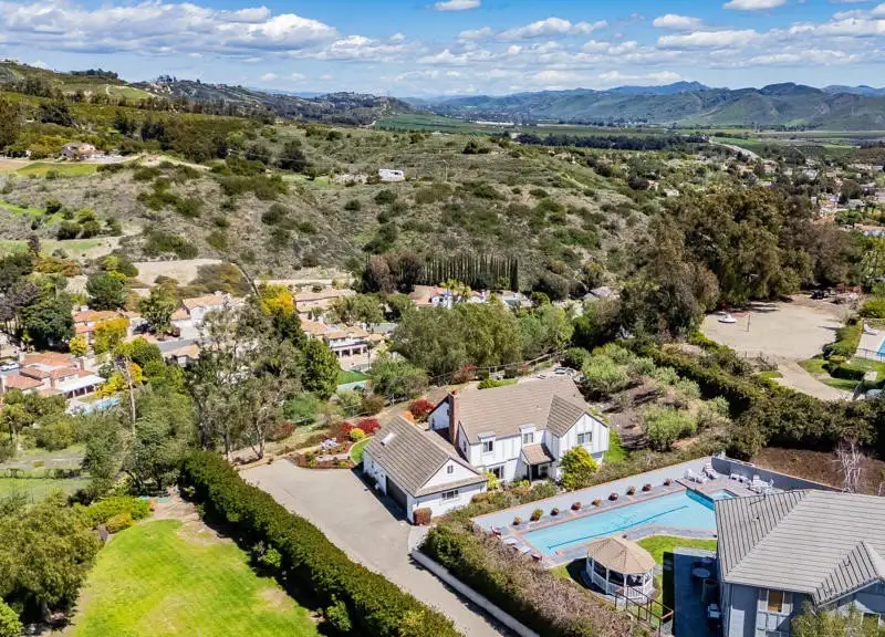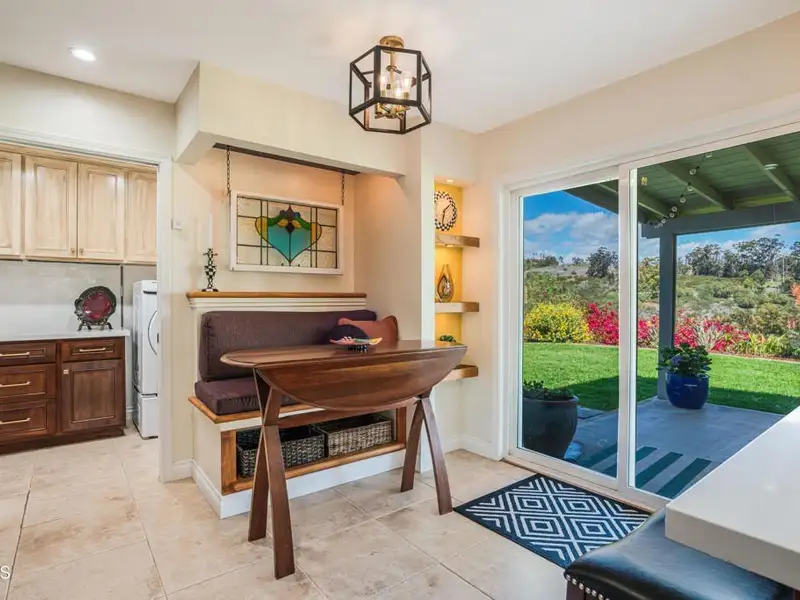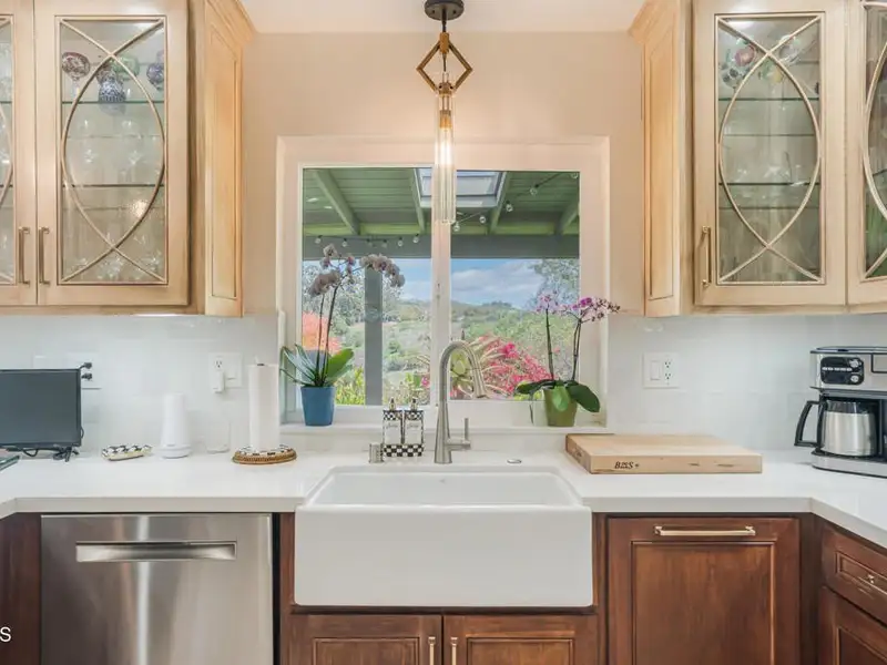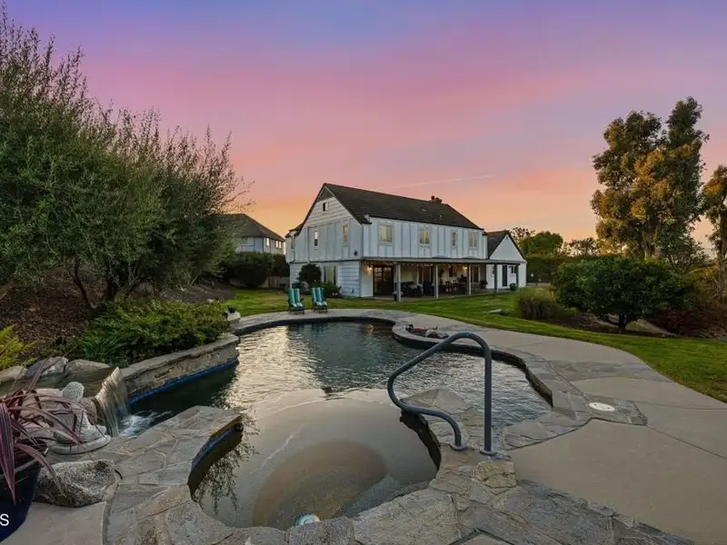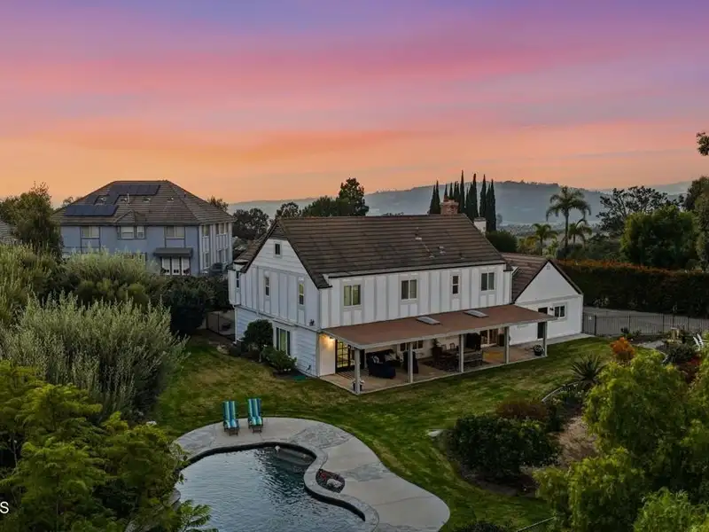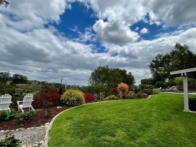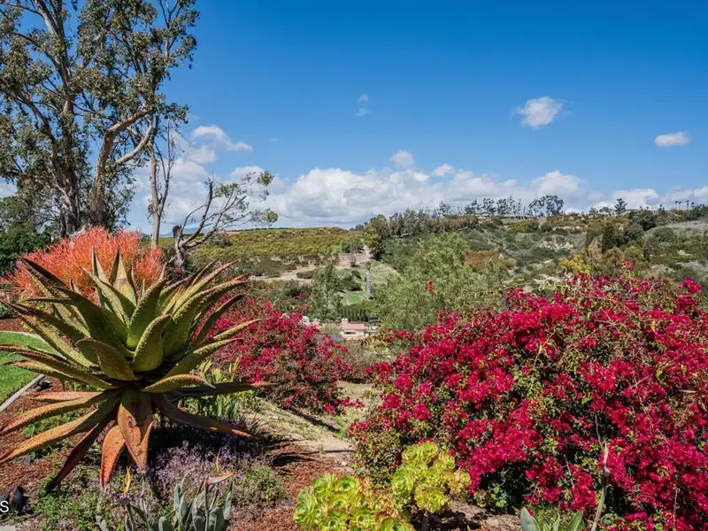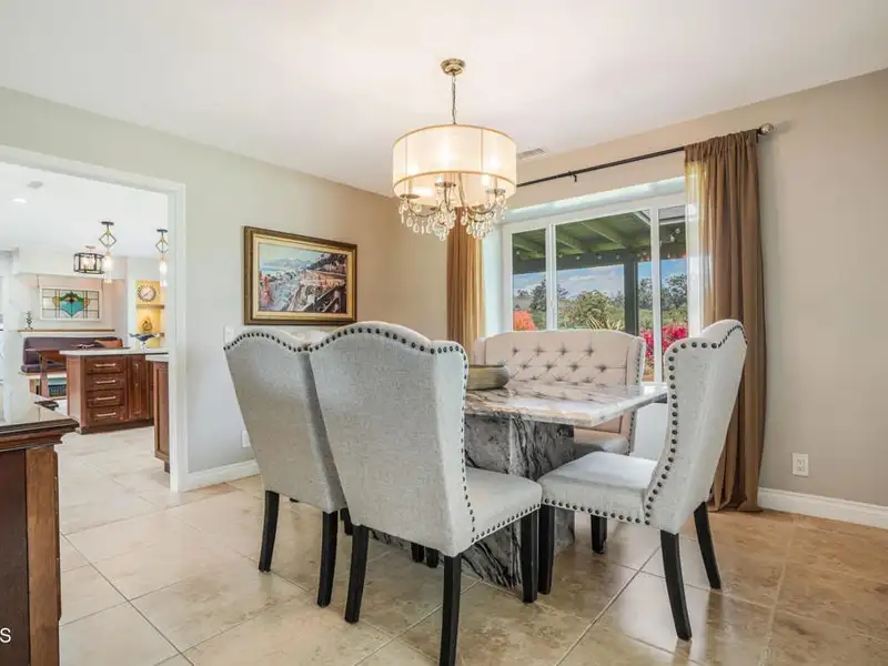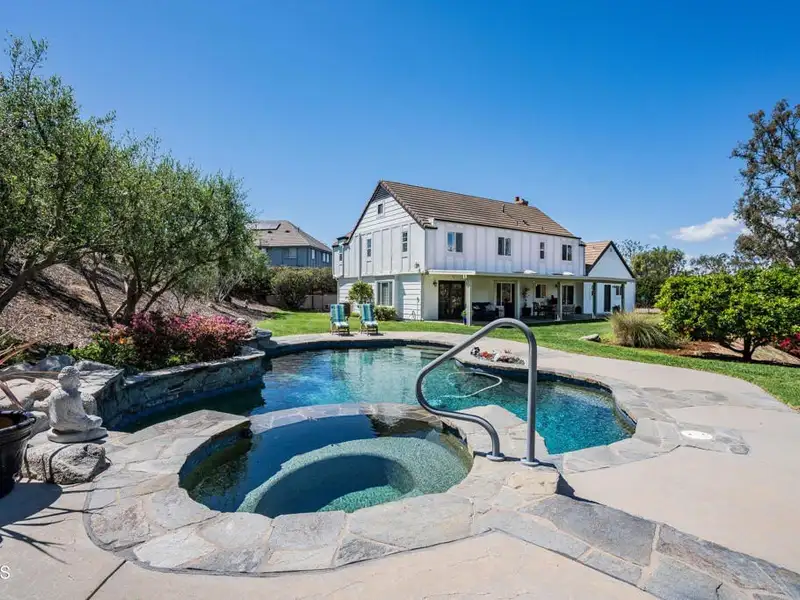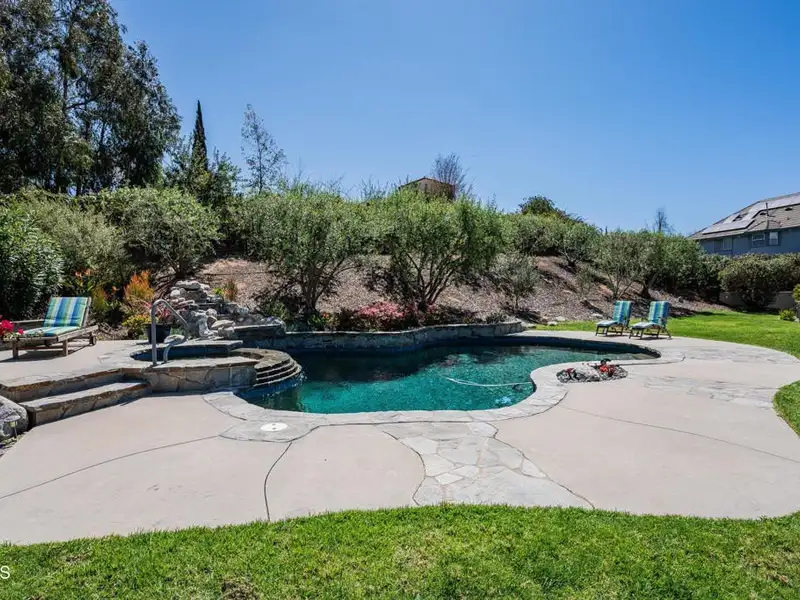 Experience modern luxury, privacy and sweeping VIEWS from this beautifully reimagined custom residence in the prestigious Terra Bella Estates. Set on a private flag lot and designed for both refined entertaining and everyday comfort, this home has been thoughtfully remodeled throughout with timeless finishes and an effortless indoor-outdoor lifestyle. Step inside to a warm, sophisticated living room anchored by a classic custom fireplace. Overhead, an exquisite Tiffany stained-glass chandelier adds a soft, artful glow - creating a space that is both elegant and inviting. The heart of the home is the beautiful chef's kitchen, where sleek quartz countertops, soft-close custom solid wood cabinetry with Rev-A-Shelf pull-outs, contrasting hand-cut lower cherrywood and upper hand painted wood complement high-end stainless-steel appliances including a commercial-grade 5-burner range and professional vent hood. A formal dining room sets the stage for memorable gatherings, while the adjoining family room offers a relaxed, comfortable space for daily living. With six bedrooms, including one conveniently located on the main level, the floor plan provides exceptional versatility. The primary suite is a calming retreat featuring a generous layout and a fully remodeled spa-inspired en-suite with quartz dual vanity, wash-let bidet, luxurious free-standing soaking tub, and an expansive walk-in shower highlighted with marble lattice tile and refined modern fixtures. The home also features a second full bath and two additional half baths, ensuring comfort and convenience for residents and guests alike. Step outdoors and discover your own private oasis! A covered patio invites lounging, dining, and quiet morning coffee moments, while the sparkling pool and spa - complete with a soothing waterfall feature - offer resort-style enjoyment with stunning panoramic views. Surrounded by mature olive trees and thoughtful landscaping, the backyard feels serene and completely private - an escape designed for true relaxation. The home has also been upgraded for modern efficiency and comfort, featuring a brand-new furnace, tankless water heater, and all new PEX plumbing. The two-car garage includes a versatile bonus room ideal for a home gym or studio, and an unfinished attic space offers exciting potential to be reimagined - possibly as an added room with an ocean view. A rare offering blending classic elegance, modern comfort and nature!