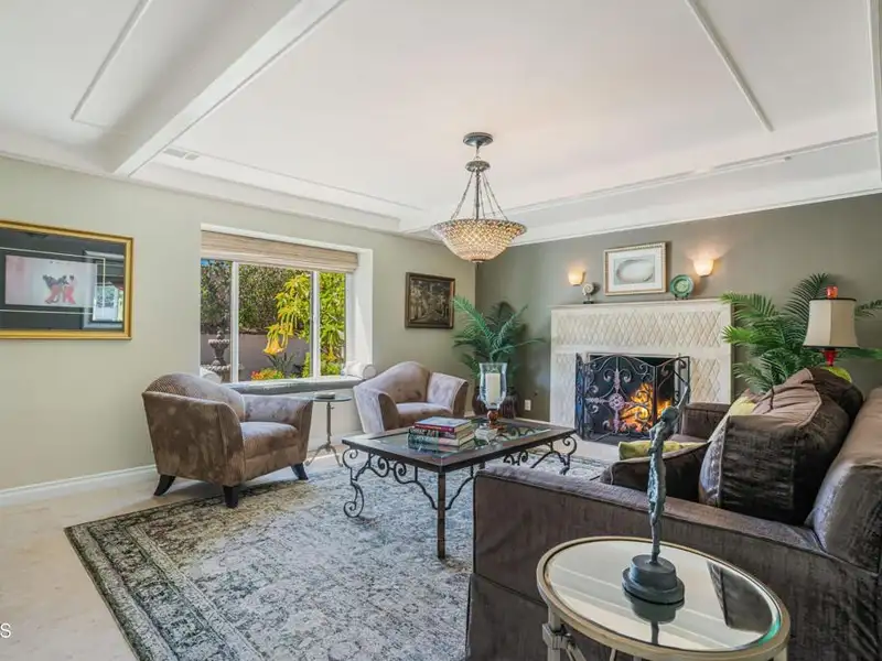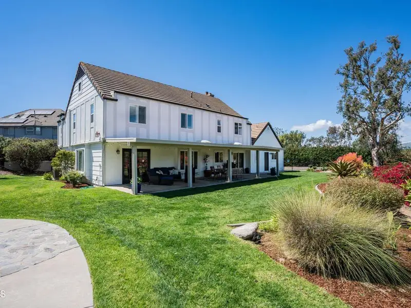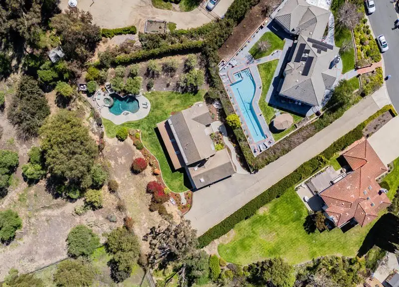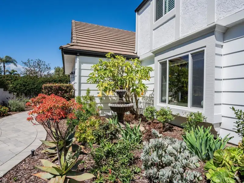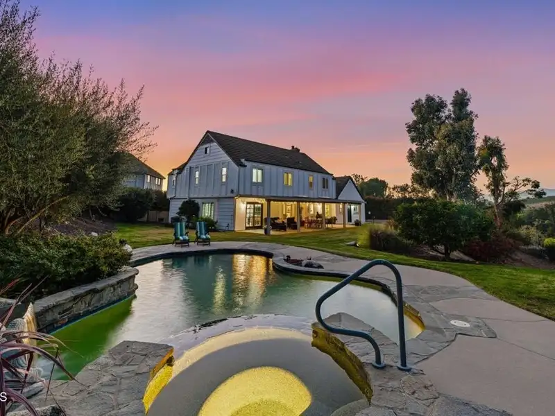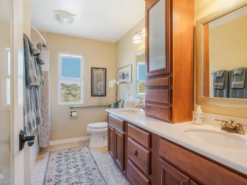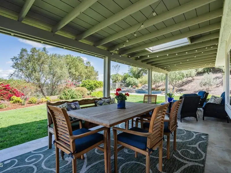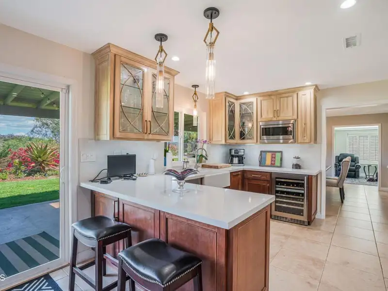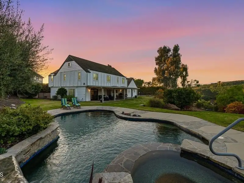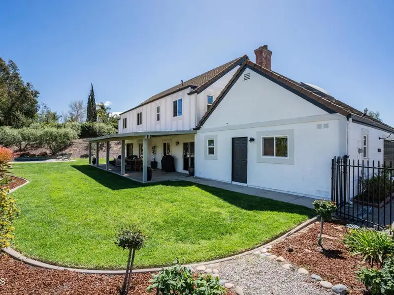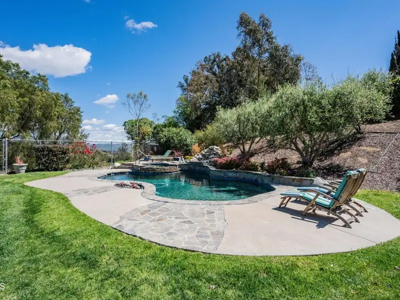 Experience modern luxury, privacy and sweeping VIEWS from this beautifully reimagined custom residence in the prestigious Terra Bella Estates. Set on a private flag lot and designed for both refined entertaining and everyday comfort, this home has been thoughtfully remodeled throughout with timeless finishes and an effortless indoor-outdoor lifestyle. Step inside to a warm, sophisticated living room anchored by a classic custom fireplace. Overhead, an exquisite Tiffany stained-glass chandelier adds a soft, artful glow - creating a space that is both elegant and inviting. The heart of the home is the beautiful chef's kitchen, where sleek quartz countertops, soft-close custom solid wood cabinetry with Rev-A-Shelf pull-outs, contrasting hand-cut lower cherrywood and upper hand painted wood complement high-end stainless-steel appliances including a commercial-grade 5-burner range and professional vent hood. A formal dining room sets the stage for memorable gatherings, while the adjoining family room offers a relaxed, comfortable space for daily living. With six bedrooms, including one conveniently located on the main level, the floor plan provides exceptional versatility. The primary suite is a calming retreat featuring a generous layout and a fully remodeled spa-inspired en-suite with quartz dual vanity, wash-let bidet, luxurious free-standing soaking tub, and an expansive walk-in shower highlighted with marble lattice tile and refined modern fixtures. The home also features a second full bath and two additional half baths, ensuring comfort and convenience for residents and guests alike. Step outdoors and discover your own private oasis! A covered patio invites lounging, dining, and quiet morning coffee moments, while the sparkling pool and spa - complete with a soothing waterfall feature - offer resort-style enjoyment with stunning panoramic views. Surrounded by mature olive trees and thoughtful landscaping, the backyard feels serene and completely private - an escape designed for true relaxation. The home has also been upgraded for modern efficiency and comfort, featuring a brand-new furnace, tankless water heater, and all new PEX plumbing. The two-car garage includes a versatile bonus room ideal for a home gym or studio, and an unfinished attic space offers exciting potential to be reimagined - possibly as an added room with an ocean view. A rare offering blending classic elegance, modern comfort and nature!