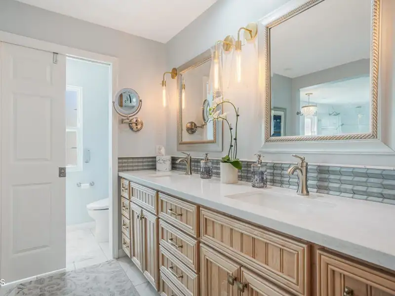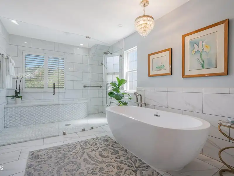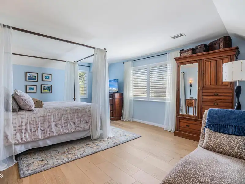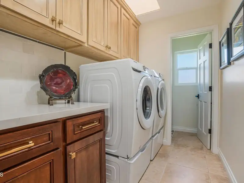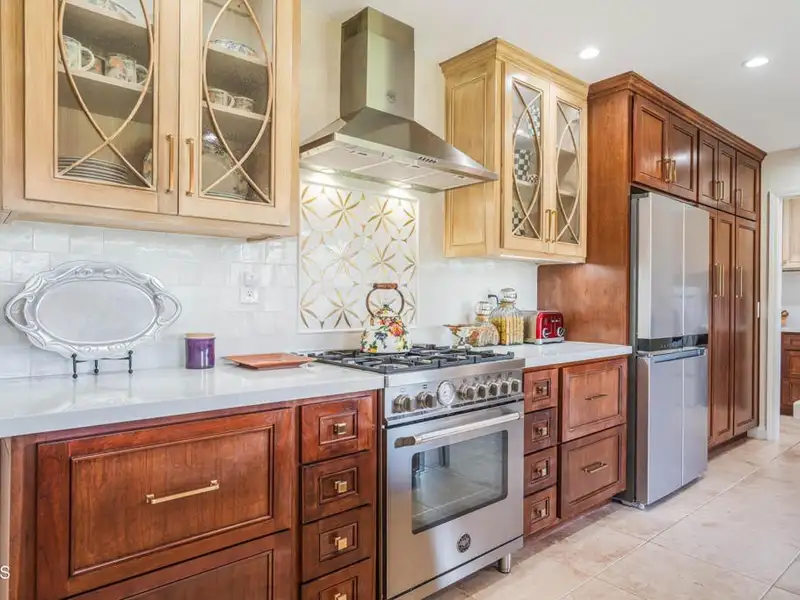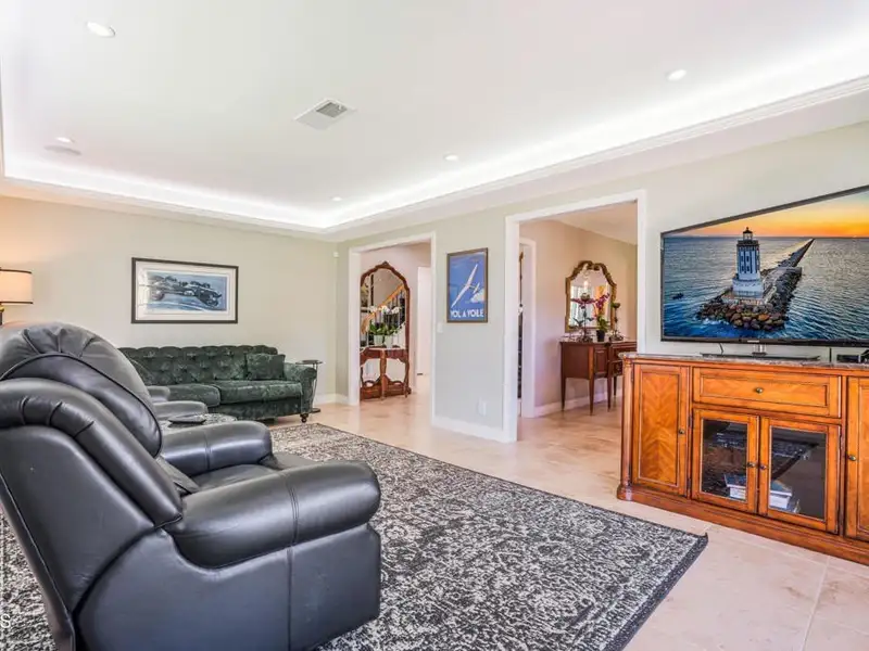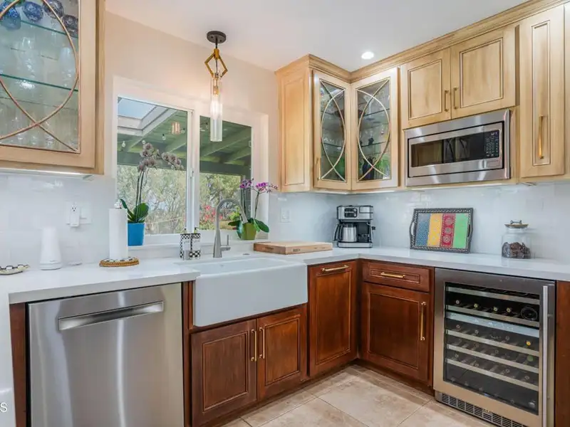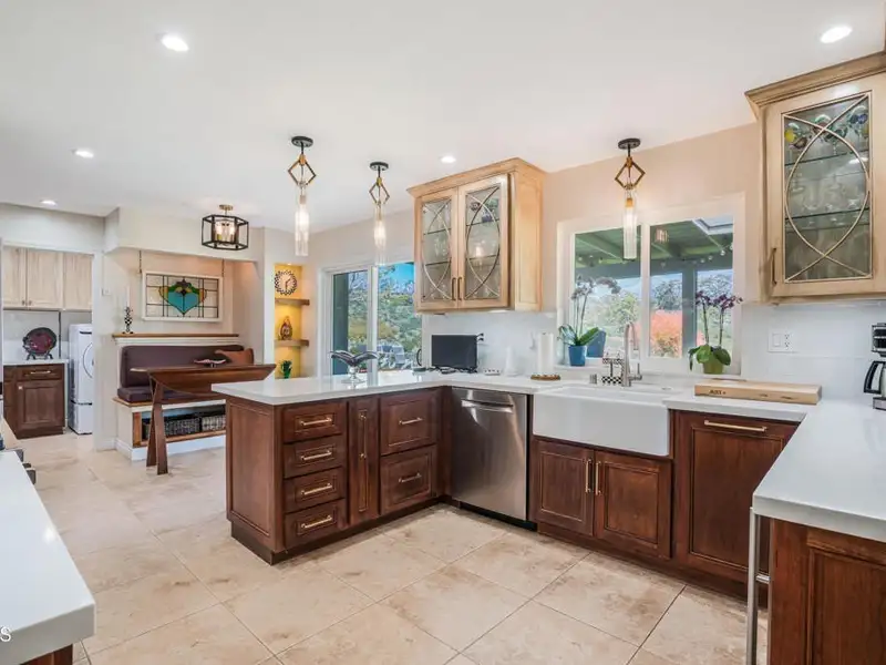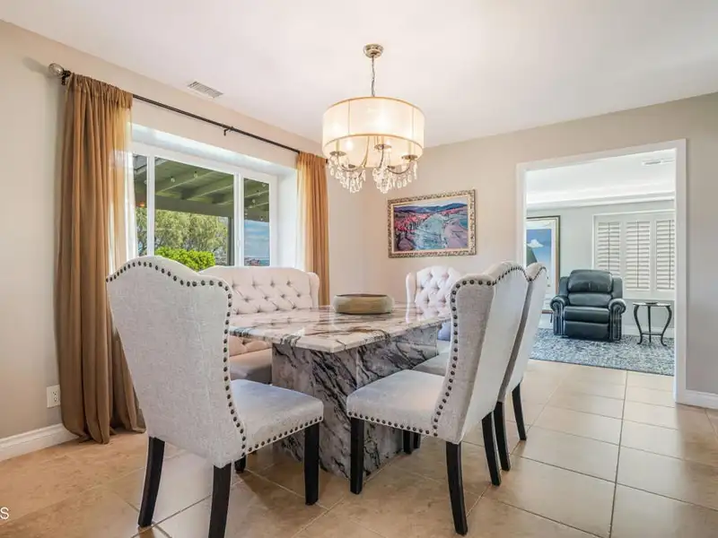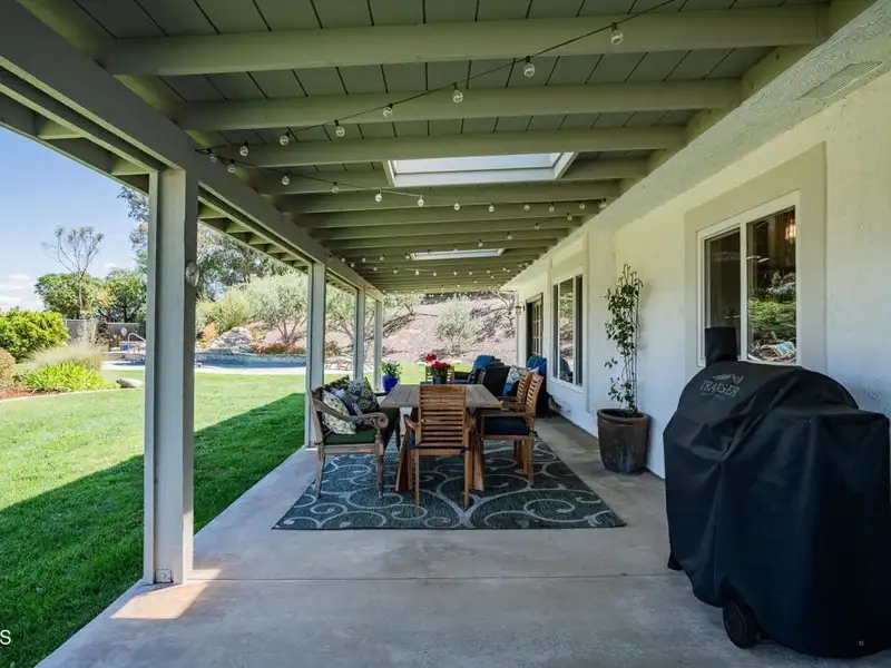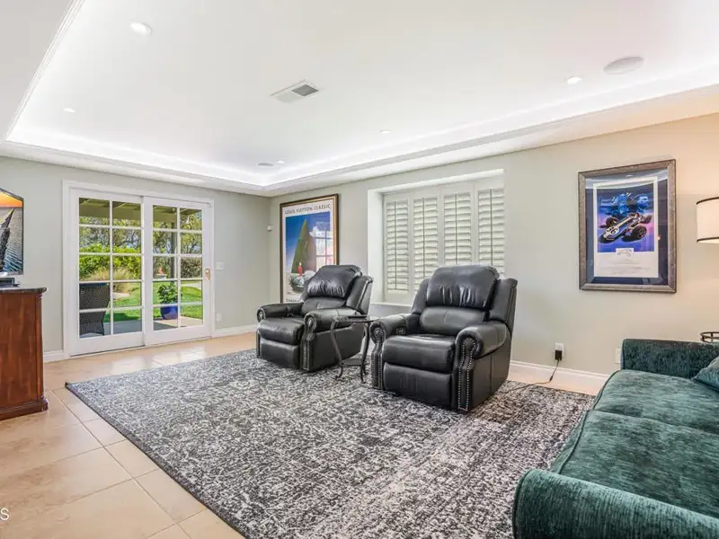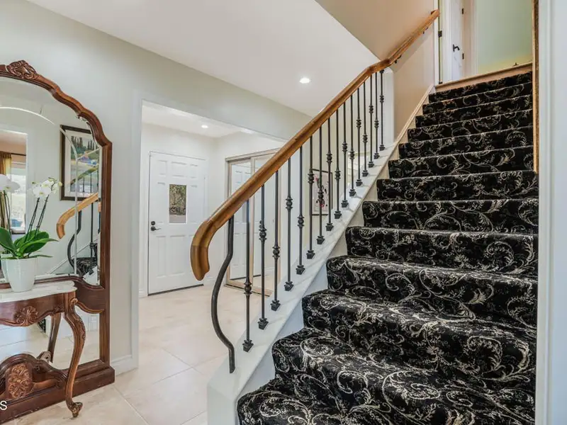 Experience modern luxury, privacy and sweeping VIEWS from this beautifully reimagined custom residence in the prestigious Terra Bella Estates. Set on a private flag lot and designed for both refined entertaining and everyday comfort, this home has been thoughtfully remodeled throughout with timeless finishes and an effortless indoor-outdoor lifestyle. Step inside to a warm, sophisticated living room anchored by a classic custom fireplace. Overhead, an exquisite Tiffany stained-glass chandelier adds a soft, artful glow - creating a space that is both elegant and inviting. The heart of the home is the beautiful chef's kitchen, where sleek quartz countertops, soft-close custom solid wood cabinetry with Rev-A-Shelf pull-outs, contrasting hand-cut lower cherrywood and upper hand painted wood complement high-end stainless-steel appliances including a commercial-grade 5-burner range and professional vent hood. A formal dining room sets the stage for memorable gatherings, while the adjoining family room offers a relaxed, comfortable space for daily living. With six bedrooms, including one conveniently located on the main level, the floor plan provides exceptional versatility. The primary suite is a calming retreat featuring a generous layout and a fully remodeled spa-inspired en-suite with quartz dual vanity, wash-let bidet, luxurious free-standing soaking tub, and an expansive walk-in shower highlighted with marble lattice tile and refined modern fixtures. The home also features a second full bath and two additional half baths, ensuring comfort and convenience for residents and guests alike. Step outdoors and discover your own private oasis! A covered patio invites lounging, dining, and quiet morning coffee moments, while the sparkling pool and spa - complete with a soothing waterfall feature - offer resort-style enjoyment with stunning panoramic views. Surrounded by mature olive trees and thoughtful landscaping, the backyard feels serene and completely private - an escape designed for true relaxation. The home has also been upgraded for modern efficiency and comfort, featuring a brand-new furnace, tankless water heater, and all new PEX plumbing. The two-car garage includes a versatile bonus room ideal for a home gym or studio, and an unfinished attic space offers exciting potential to be reimagined - possibly as an added room with an ocean view. A rare offering blending classic elegance, modern comfort and nature!