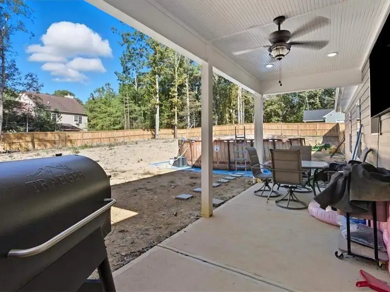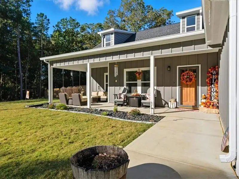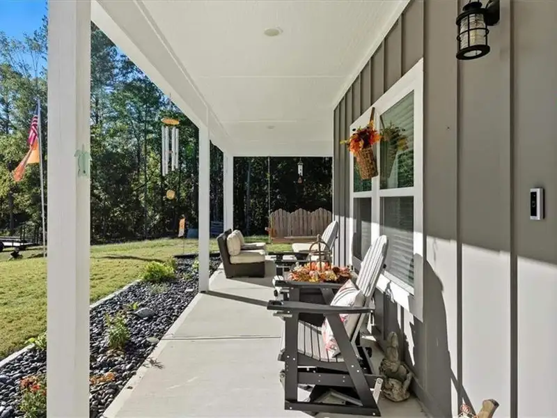 - Extended covered front porch and back patio