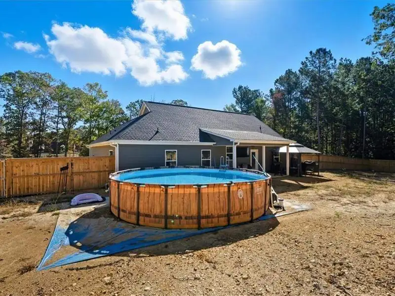 - Newly fenced backyard with wood privacy fence