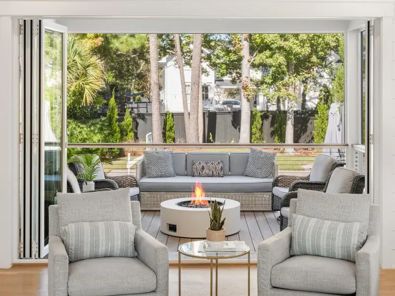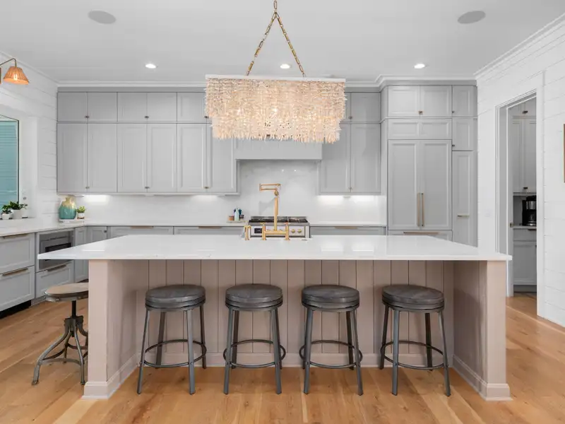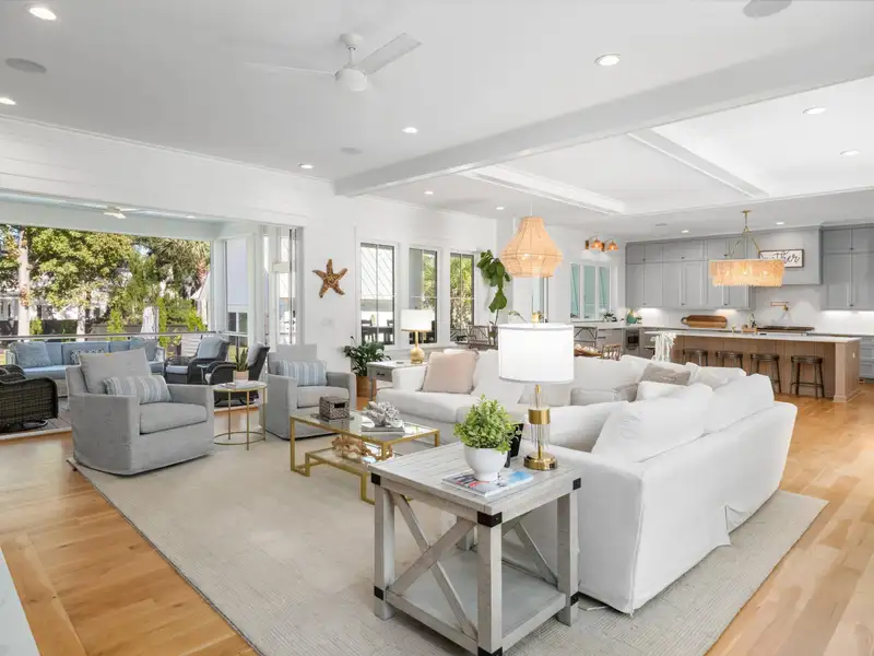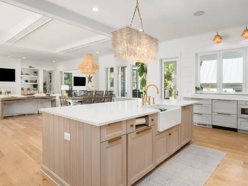 Welcome to 136 Iron Bottom Lane. Built in 2023, this newly constructed Delpino Custom Home offers refined coastal living at its best, with a FULL GOLF membership available immediately (no wait required).Designed for those who love both indoor and outdoor living, the home showcases coastal touches throughout. Accordion doors in the kitchen, living room, and cabana seamlessly bring the beauty of the outdoors in. The chef's kitchen features a separate bar area, tall wine refrigerator, and a large custom pantry that keeps everything perfectly organized. The open floor plan creates effortless flow between the kitchen, dining area, and spacious living room, all of which open to expansive porches and the outdoor kitchen.The primary suite is located on the main level of this non-elevated home. With vaulted ceilings, thoughtful design details, and private porch access, it feels like a dream retreat. The spa-inspired bathroom impresses with double vanities, a soaking tub, and a separate shower, while a laundry area in the closet adds everyday convenience. Also on the main level, an office offers flexibility as a potential guest suite.