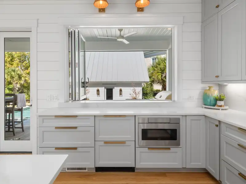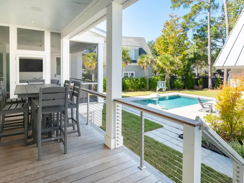 Out back, the cabana steals the show with its large kitchenette/bar and full bath, perfect for entertaining or relaxing by the saltwater pool. The large lot provides ample green space and room to play.