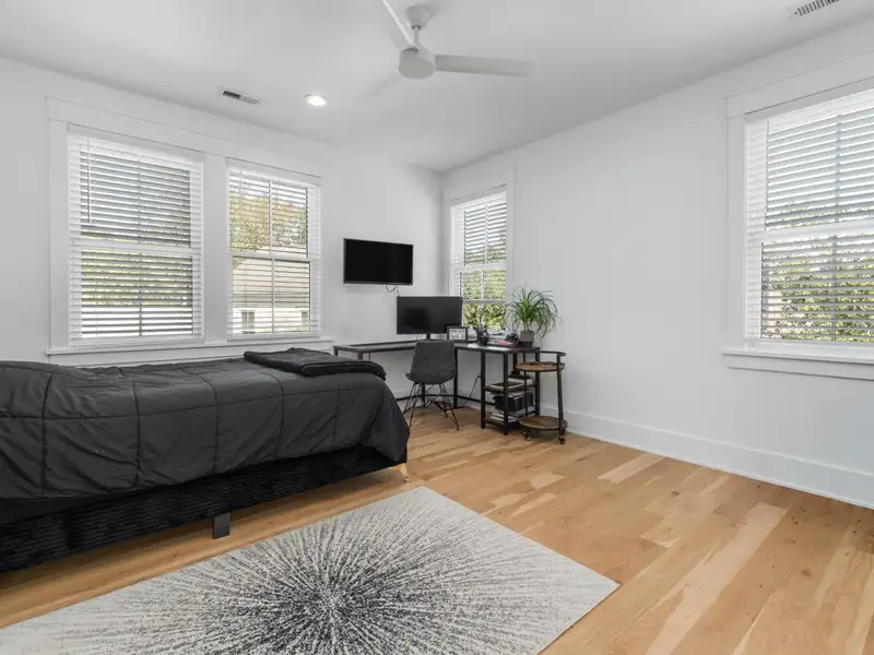 Upstairs, you'll find a mudroom with four built-in lockers just off the 2.5-car garage entrance. A spacious flex room with a Murphy bed and sofa provides additional versatility, while three generous bedrooms each feature beautifully designed en suite baths. A second laundry room and a glass-enclosed office complete the upper level.