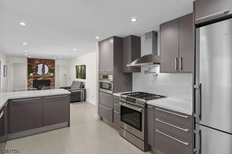 - Wood-burning fireplace in family room