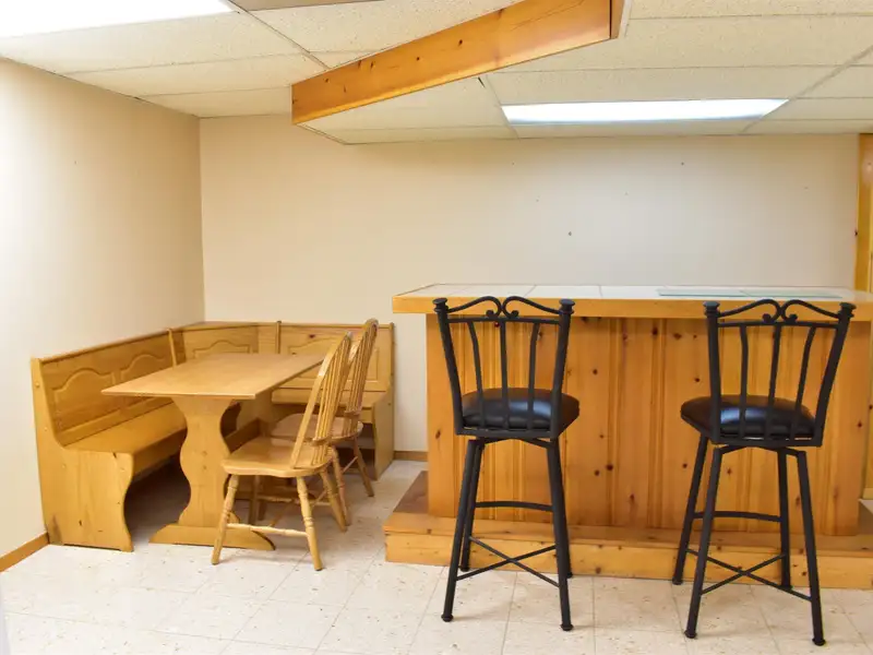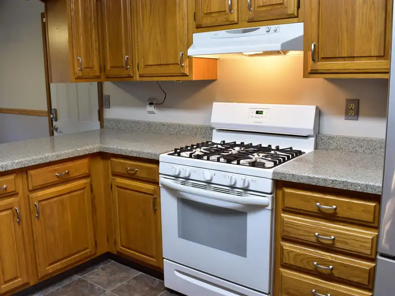 - Eat-in kitchen with oak cabinets, granite