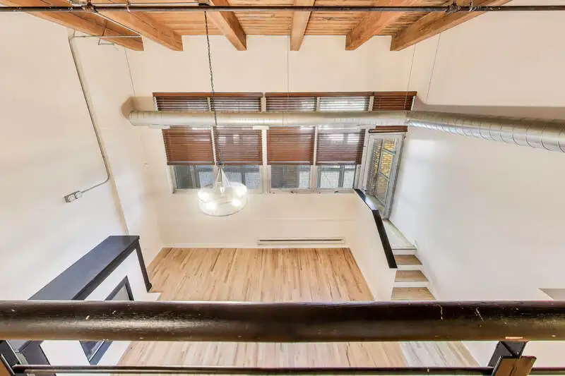 - Soaring 17' timber ceiling with exposed beams