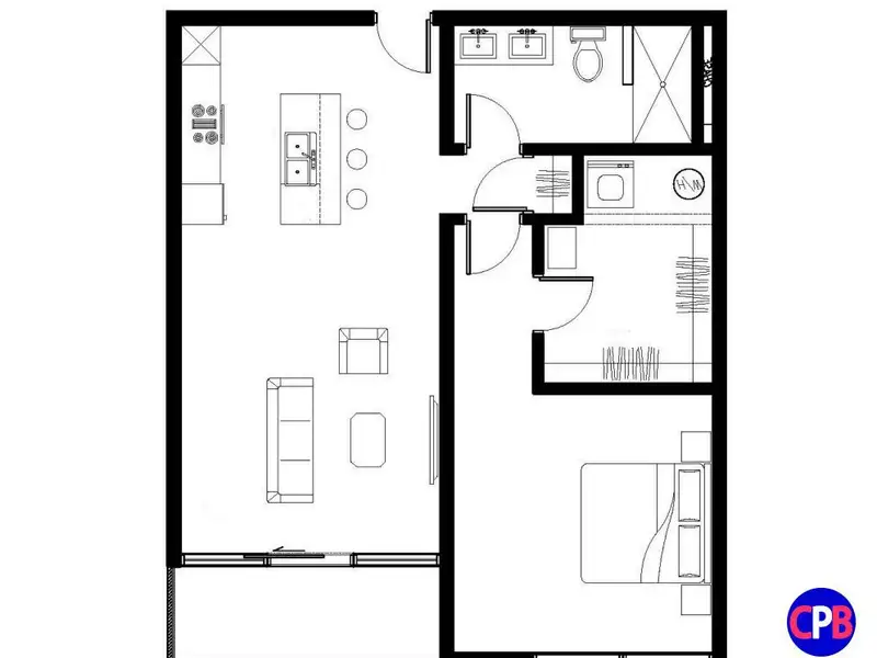 - Open concept living area with island