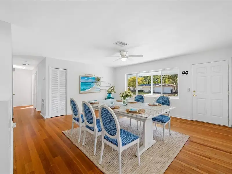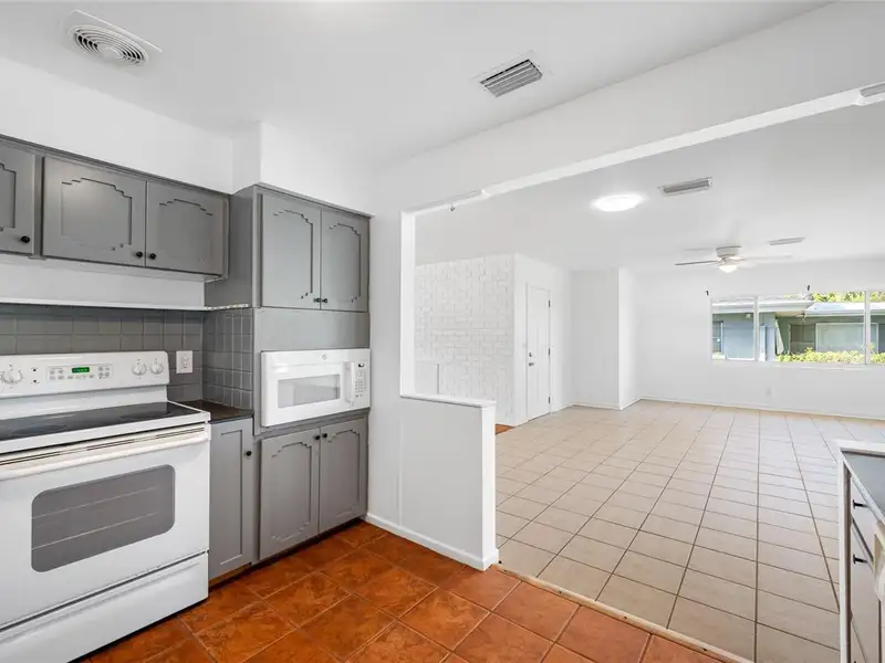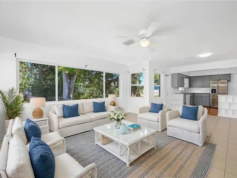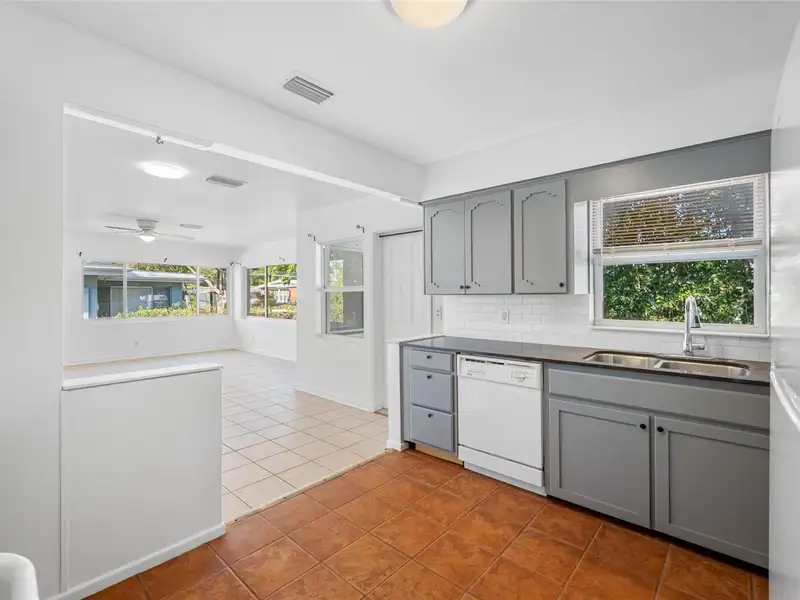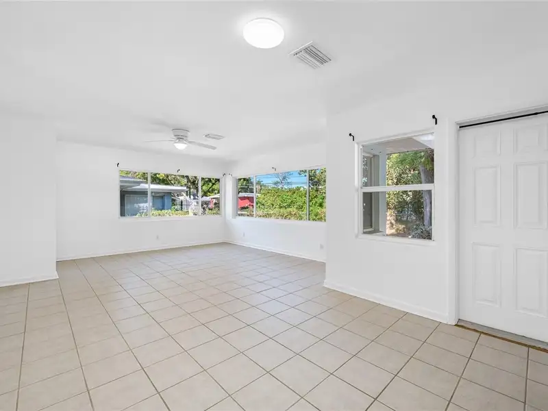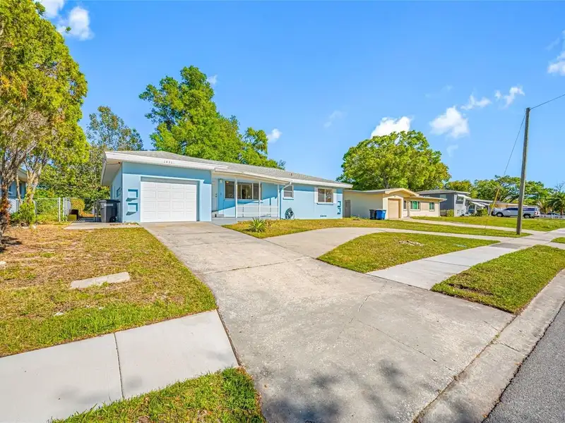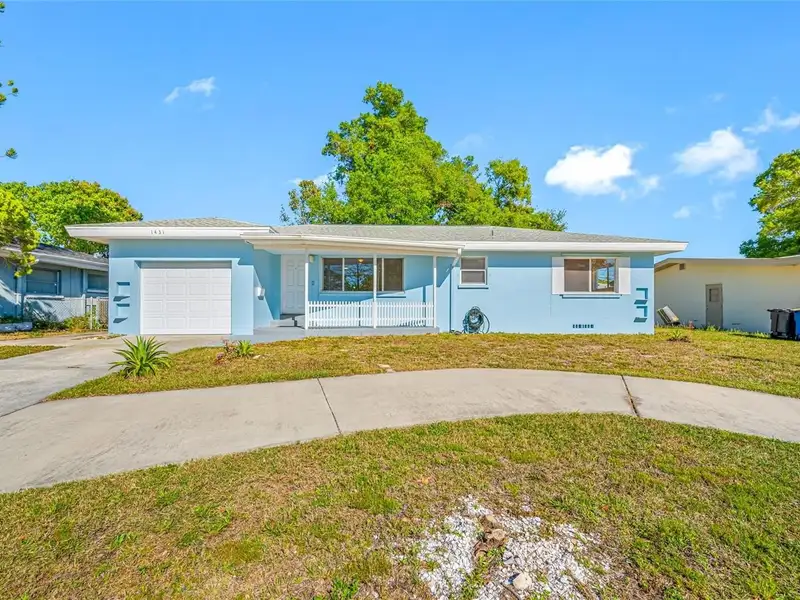 Terrace in Clearwater. Beautifully crafted block home with attractive curb appeal and a useful circular drive, this property creates a welcoming first impression while offering practicality and ease. A PERFECT BLEND of style and functionality awaits! Embrace the warmth of open, airy living spaces, flooded with natural light that breathes life into every corner. Rock-Solid Ranch style home built on crawl space and just blocks to Hibiscus Lake Park and the Clearwater County Club Golf Course! NO FLOOD INSURANCE REQUIRED! Charming 2 bed/2 bath, 1444 square foot home with expansive, light filled living areas that are INCREDIBLY VERSATILE! Upon entering, you step into the large living room with wood flooring where comfort meets style. The wood flooring extends into the hallway and both generous sized bedrooms that have built-ins, plenty of closet space and two full bathrooms – the Primary Suite has its own full bathroom with a customized shower. There is a HUGE, FAMILY FRIENDLY Florida/Family room and Dining area off the Kitchen that is the “Heart of the Home”. The CRAFTSMAN-LIKE Kitchen adjoins the living areas and is perfect for the cook that doesn’t want to be separated from family and friends. The kitchen has natural wood cabinetry and granite counters, and the sink has a window above that looks out on your serene backyard. The windows off the family and dining room overlook the large, fenced backyard where you can embrace the outdoors in a sprawling, securely fenced yard—a haven for active kids and cherished family moments. Enjoy an OVERSIZED one car garage which offers additional storage and has a laundry corner with the washer and dryer. UNLEASH the charm of this mid-century gem! With its clean lines, unique character, and a layout brimming with possibilities, this home is bursting with potential. This pristinely maintained home with UNTAPPED potential is ready for your personal touch. Whether you're dreaming of preserving its retro flair or infusing modern upgrades, this timeless classic is a canvas ready for your vision. Perfect for entertaining or unwinding, this bright and expansive sanctuary is your personal haven.