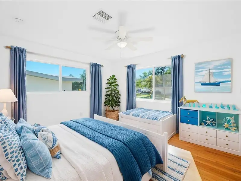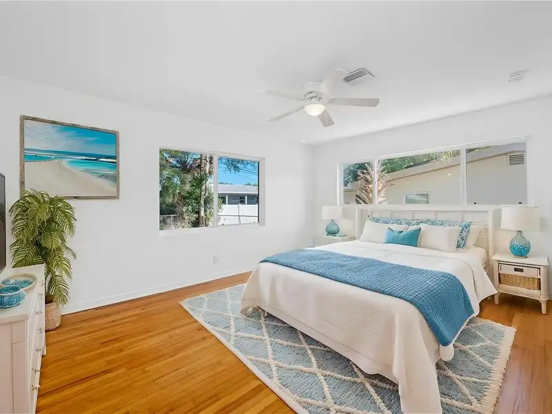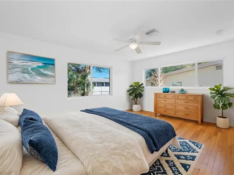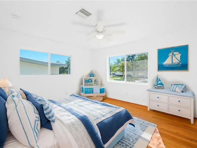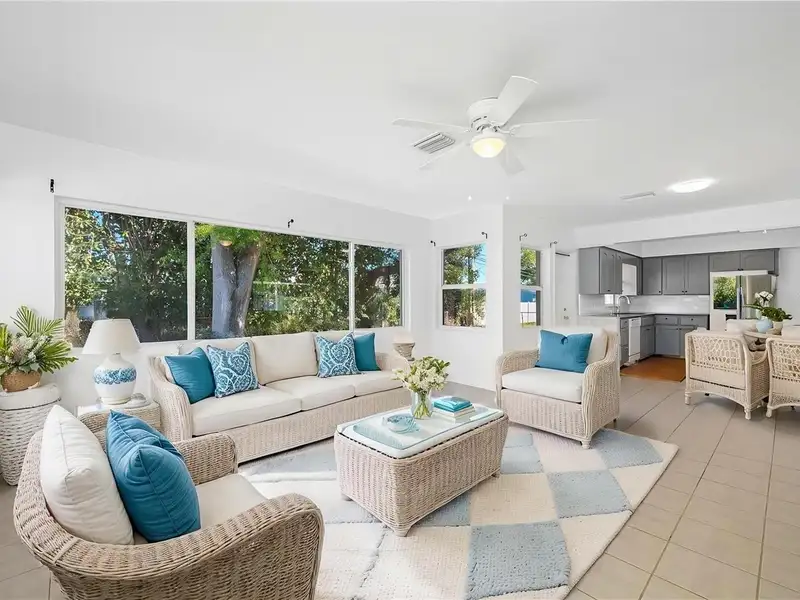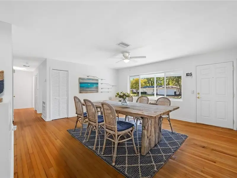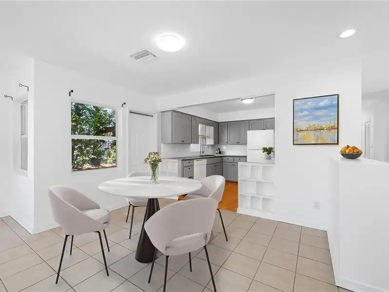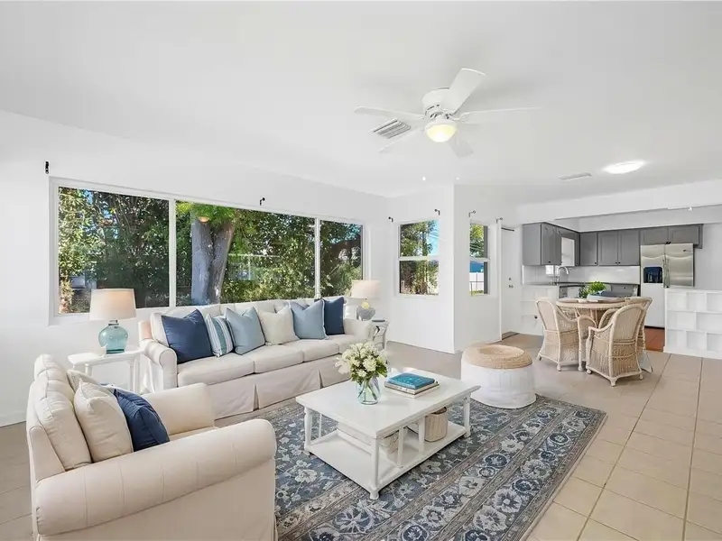 Terrace in Clearwater. Beautifully crafted block home with attractive curb appeal and a useful circular drive, this property creates a welcoming first impression while offering practicality and ease. A PERFECT BLEND of style and functionality awaits! Embrace the warmth of open, airy living spaces, flooded with natural light that breathes life into every corner. Rock-Solid Ranch style home built on crawl space and just blocks to Hibiscus Lake Park and the Clearwater County Club Golf Course! NO FLOOD INSURANCE REQUIRED! Charming 2 bed/2 bath, 1444 square foot home with expansive, light filled living areas that are INCREDIBLY VERSATILE! Upon entering, you step into the large living room with wood flooring where comfort meets style. The wood flooring extends into the hallway and both generous sized bedrooms that have built-ins, plenty of closet space and two full bathrooms – the Primary Suite has its own full bathroom with a customized shower. There is a HUGE, FAMILY FRIENDLY Florida/Family room and Dining area off the Kitchen that is the “Heart of the Home”. The CRAFTSMAN-LIKE Kitchen adjoins the living areas and is perfect for the cook that doesn’t want to be separated from family and friends. The kitchen has natural wood cabinetry and granite counters, and the sink has a window above that looks out on your serene backyard. The windows off the family and dining room overlook the large, fenced backyard where you can embrace the outdoors in a sprawling, securely fenced yard—a haven for active kids and cherished family moments. Enjoy an OVERSIZED one car garage which offers additional storage and has a laundry corner with the washer and dryer. UNLEASH the charm of this mid-century gem! With its clean lines, unique character, and a layout brimming with possibilities, this home is bursting with potential. This pristinely maintained home with UNTAPPED potential is ready for your personal touch. Whether you're dreaming of preserving its retro flair or infusing modern upgrades, this timeless classic is a canvas ready for your vision. Perfect for entertaining or unwinding, this bright and expansive sanctuary is your personal haven.