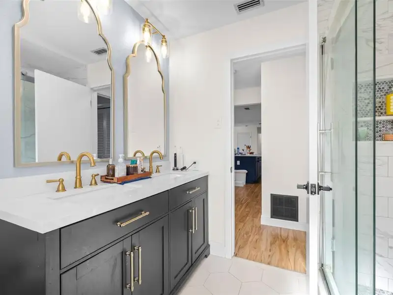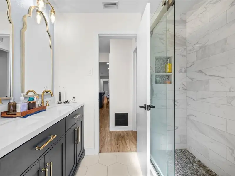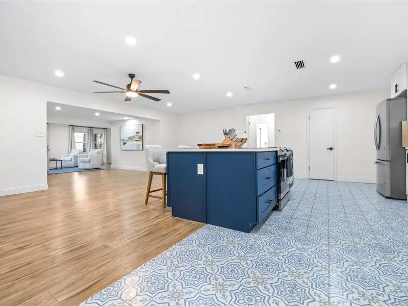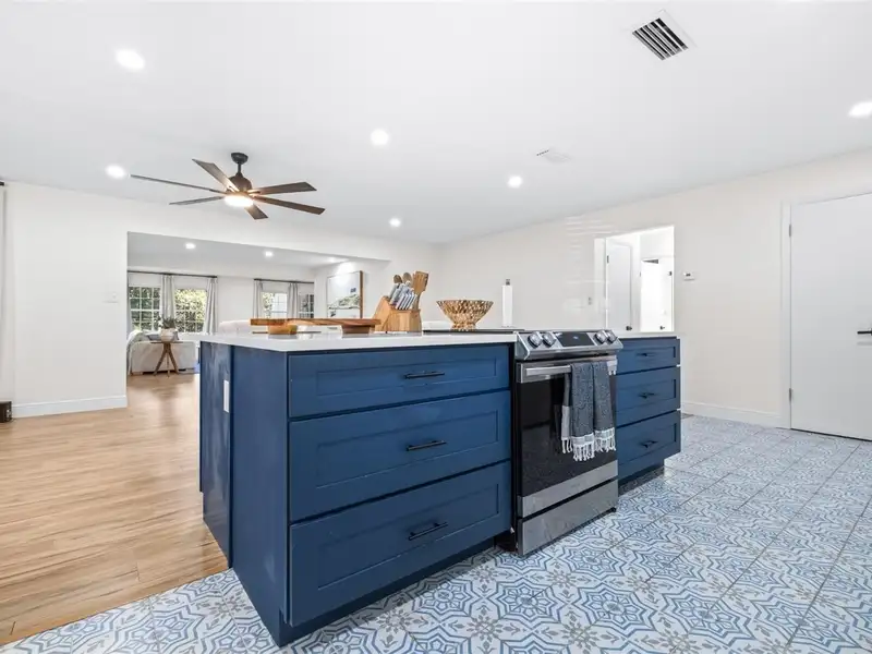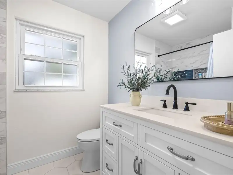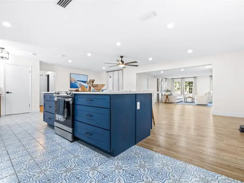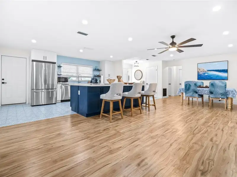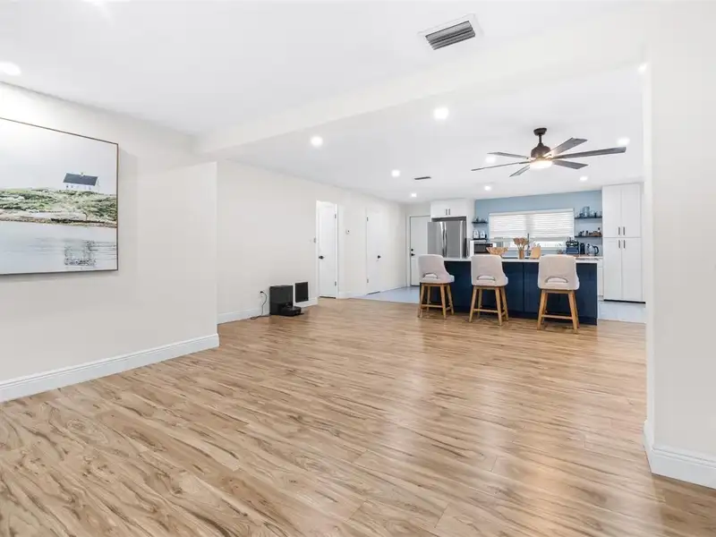 BRAND NEW ENERGY EFFICIENT AC JUST INSTALLED Welcoming Retreat in The Meadows at Morningside Discover your new sanctuary nestled beneath the graceful oak trees in this charming, well-established neighborhood. This beautifully renovated home is move-in ready, featuring a circular driveway that leads to an exquisite leaded glass front door. As you enter, you’re greeted by an inviting open floor plan that radiates warmth and brightness. The heart of the home is an impressive oversized custom island, perfect for casual dining or hosting gatherings, showcasing premium quartz countertops and stylish blue cabinetry that pairs beautifully with the white shaker-style cabinets, complete with soft-close drawers and open shelving. The elegant designer tile flooring enhances the space while providing ample storage through two large pantries.The kitchen seamlessly connects to generous living and dining areas, creating an ideal environment for entertaining. Retreat to the primary suite, which boasts a spacious walk-in closet with an organized storage system and a chic barn door accent. The en suite bathroom is a luxurious escape, featuring a stunning double vanity with quartz counters and modern gold fixtures. The newly tiled shower, adorned with designer details, reaches up to the ceiling for a truly impressive look.Adjacent to the primary suite, the second bedroom is versatile enough to serve as a nursery, home office, or guest room. On the opposite side of the home, you’ll find two additional bedrooms and another beautifully updated bathroom with a stylish vanity and shower-tub combination. The expansive living area offers limitless potential for your lifestyle needs.New windows provide views of the spacious, pool-sized backyard, where a magnificent oak tree stands as a centerpiece. This home is packed with upgrades, including a new insulated garage door with an opener, fresh interior and exterior paint, a modern keyless entry system, Mohawk luxury vinyl flooring throughout, and new recessed lighting and ceiling fans.Located just a short stroll from the newly renovated Morningside Recreation Complex, you’ll enjoy access to swimming pools, playgrounds, pickleball courts, outdoor basketball facilities, a gym, lighted tennis courts, and picnic areas. Plus, you’re only minutes away from the stunning Clearwater Beach, Honeymoon Island, the Pinellas Trail, Tampa International Airport, and the vibrant downtown areas of Dunedin and Clearwater. Seize this opportunity to make this delightful home your own!