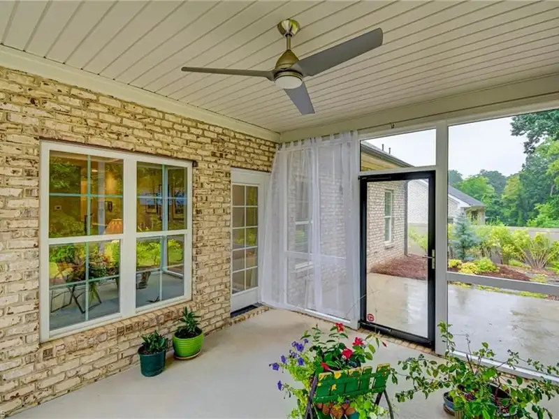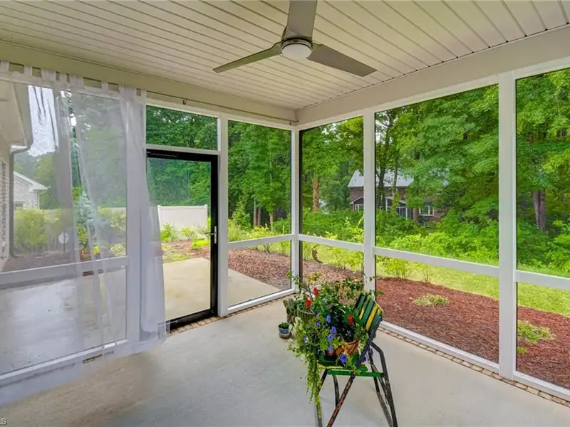- Screened porch with wooded view