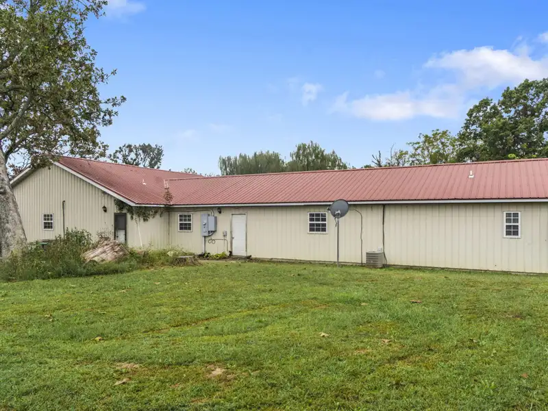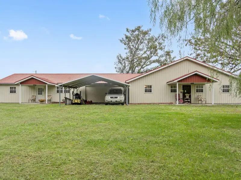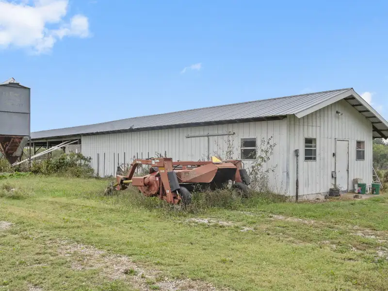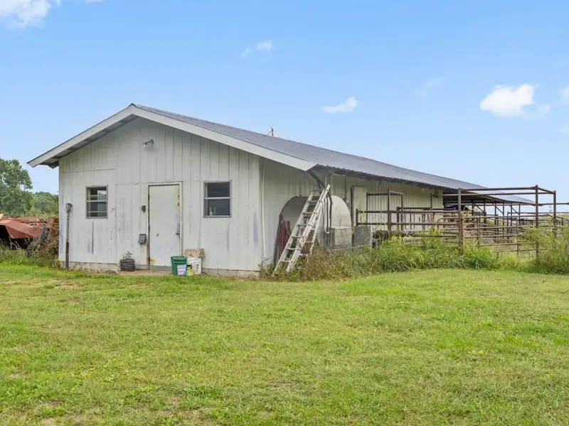 - Multiple farm outbuildings present