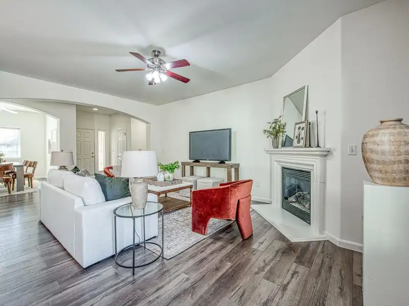 - Cozy living room with fireplace
