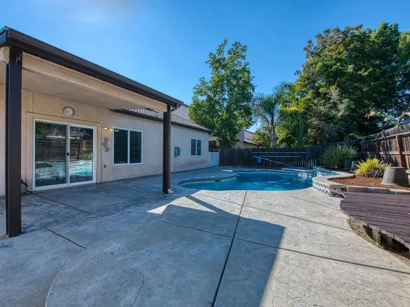 - Low-maintenance backyard with pool