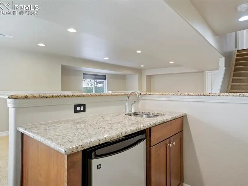 - Finished basement with wet bar and storage