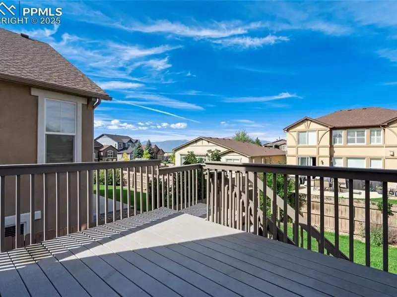 - Elevated composite deck with yard views