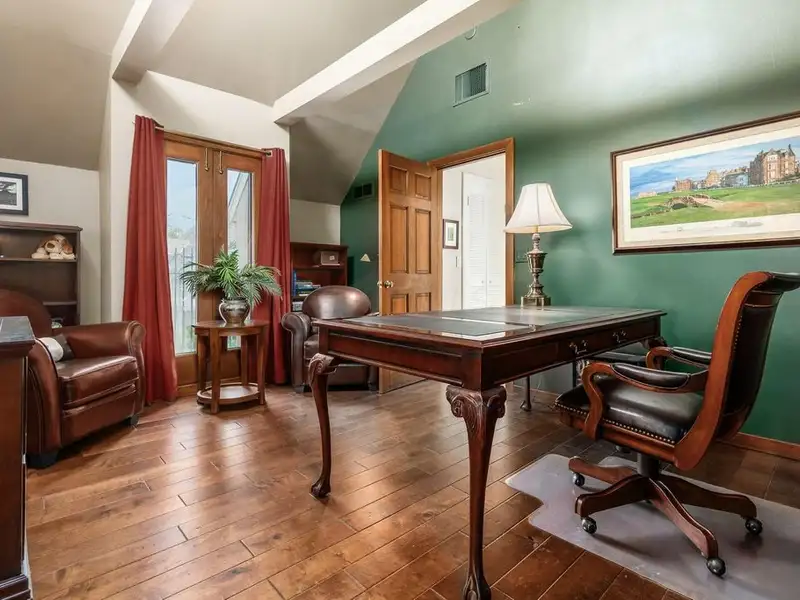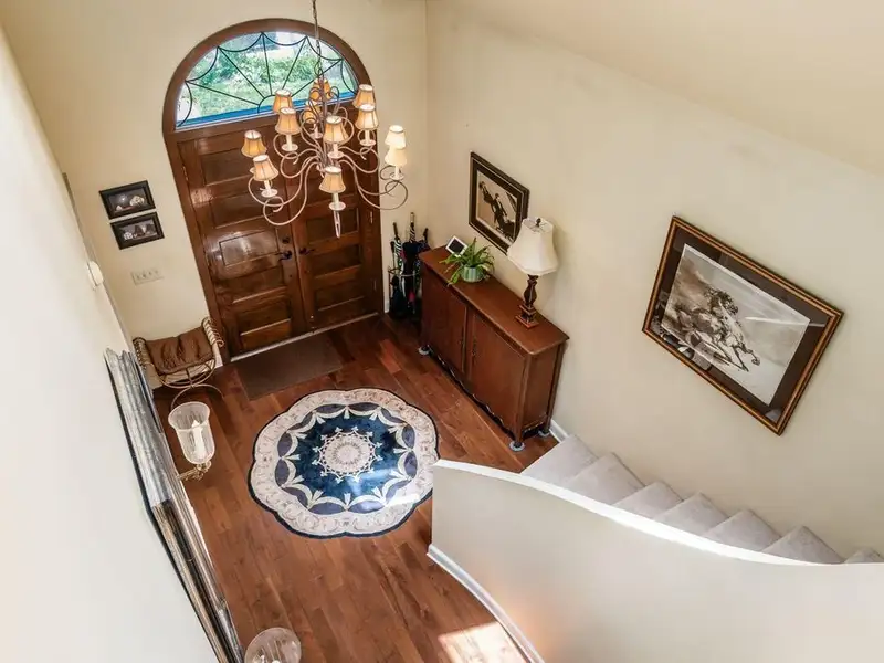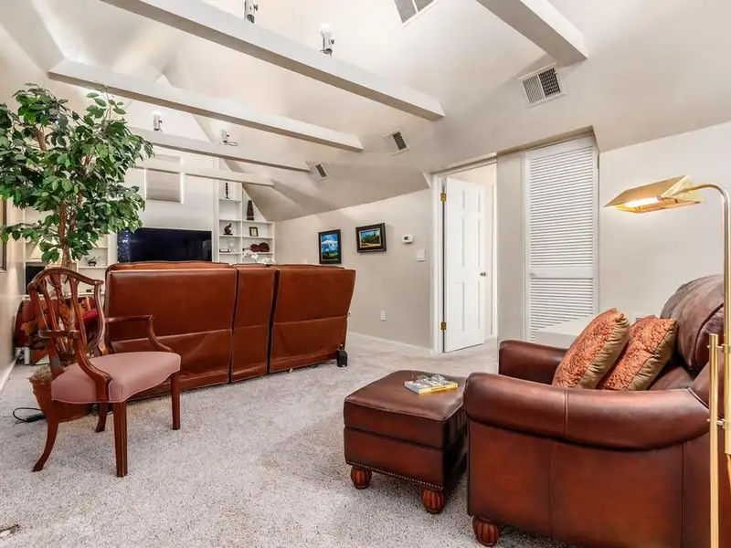 - Media room with dual staircase access
